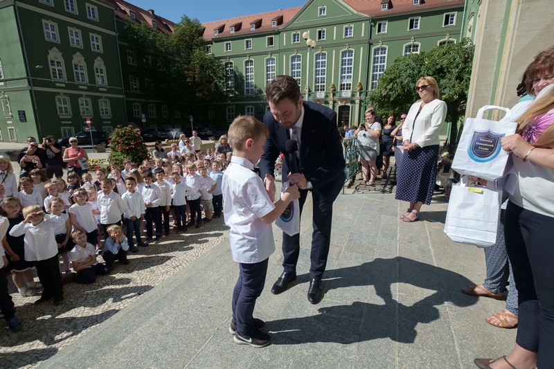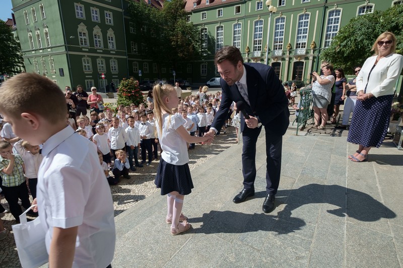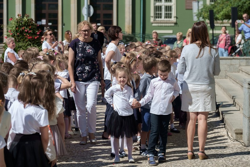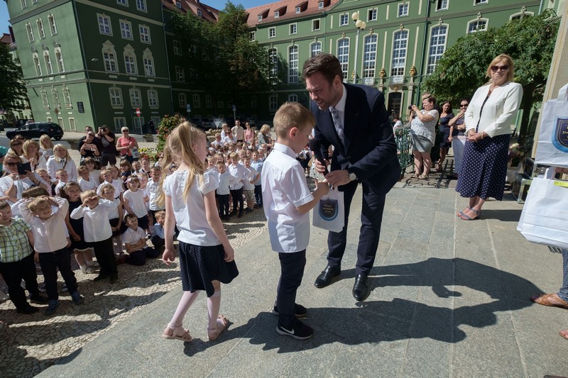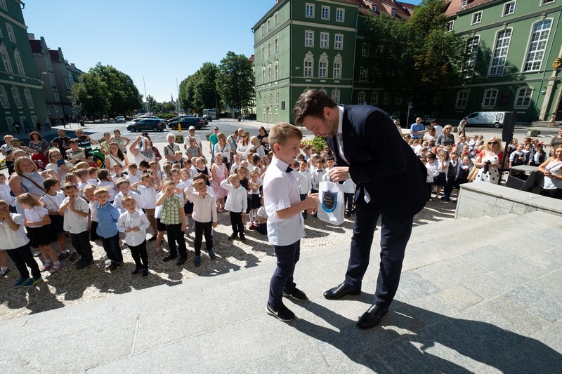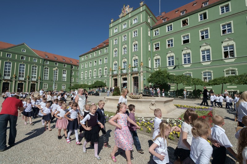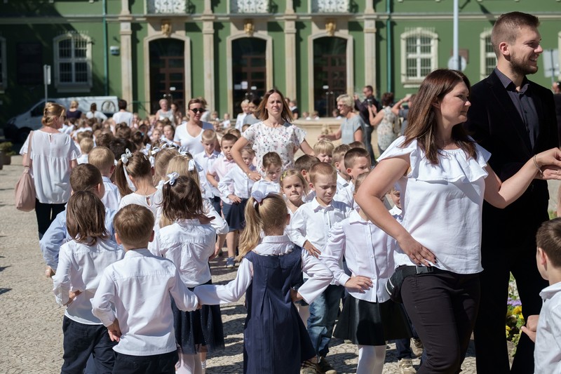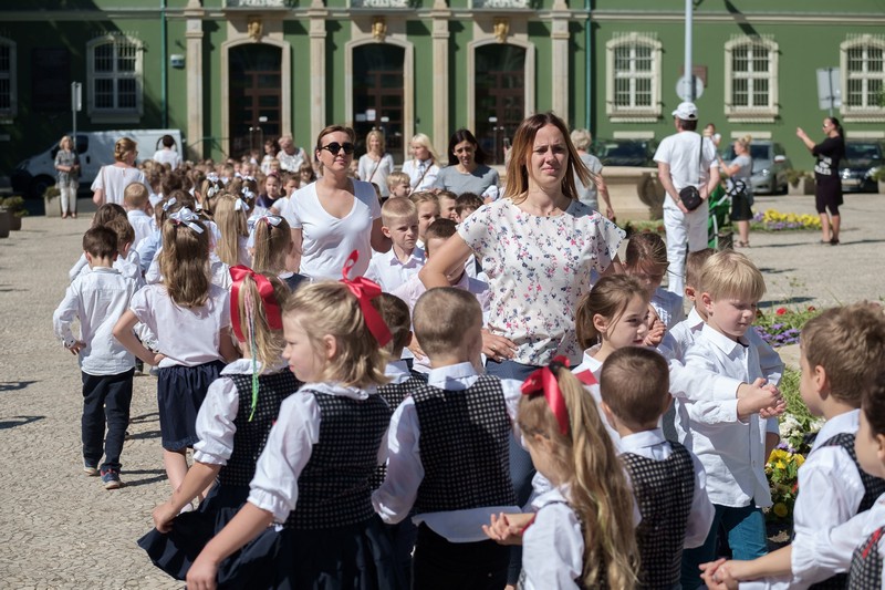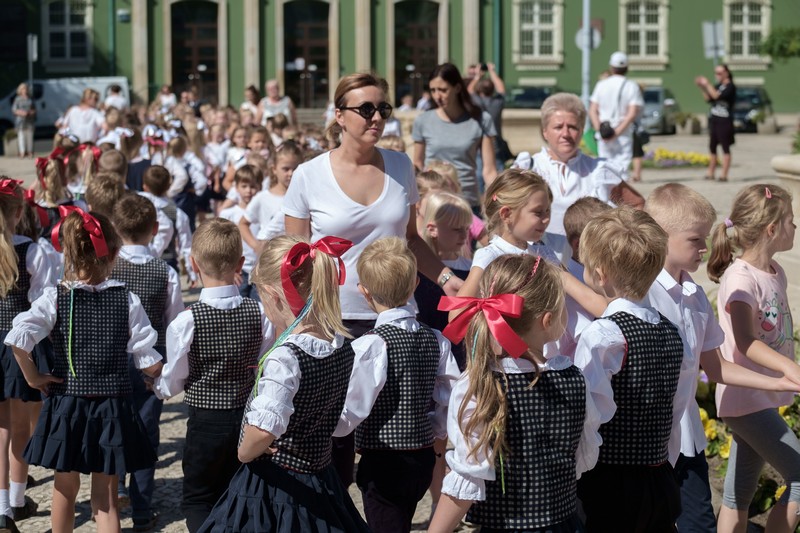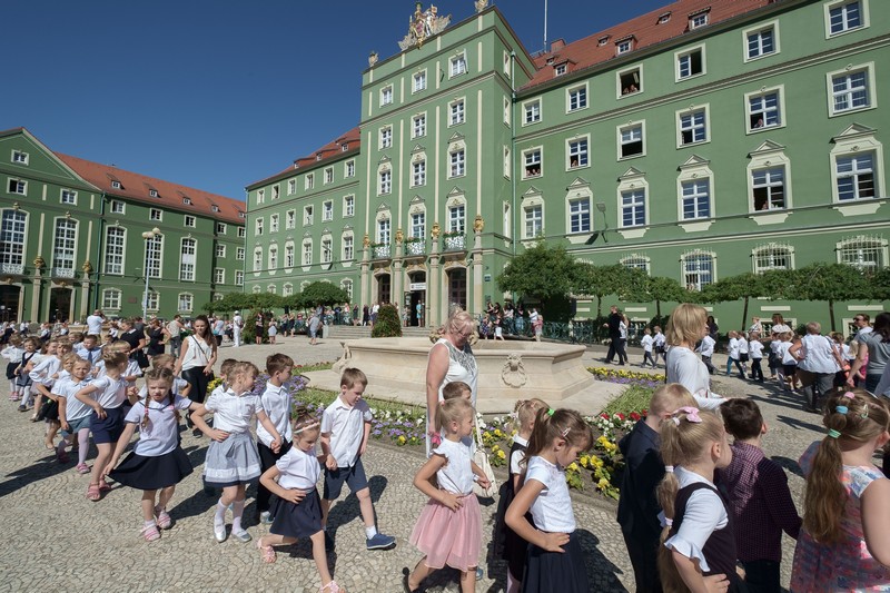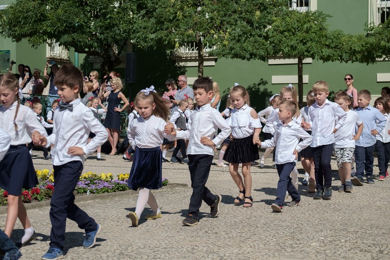 Przed szczecińskim Urzędem Miasta poloneza w środę 20 czerwca odtańczyły przedszkolaki z najstarszych grup. Była to coroczna ceremonia pn. „Pierwszy dzienniczek ucznia”. Fot. Dariusz Gorajski