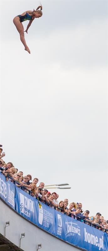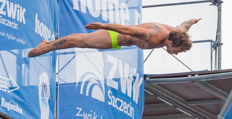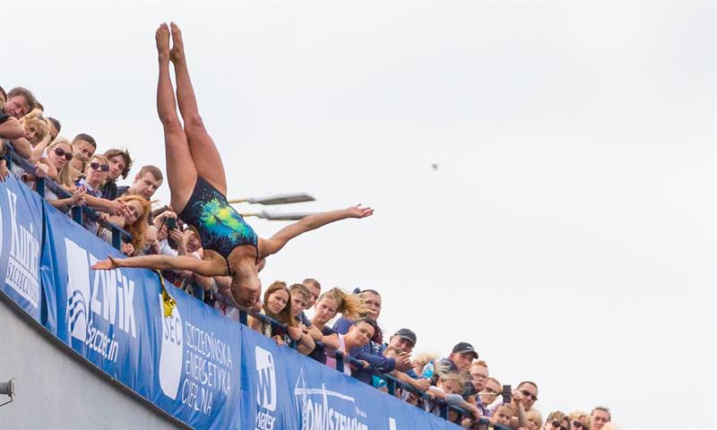 Akrobatyczne skoki do wody z wysokości 20 i 27 metrów, czyli High Diving - to nowość trwającego właśnie na Wałach Chrobrego Festiwalu Ogni Sztucznych Pyromagic.
