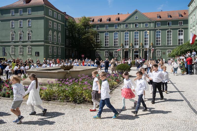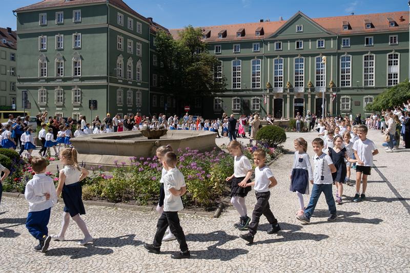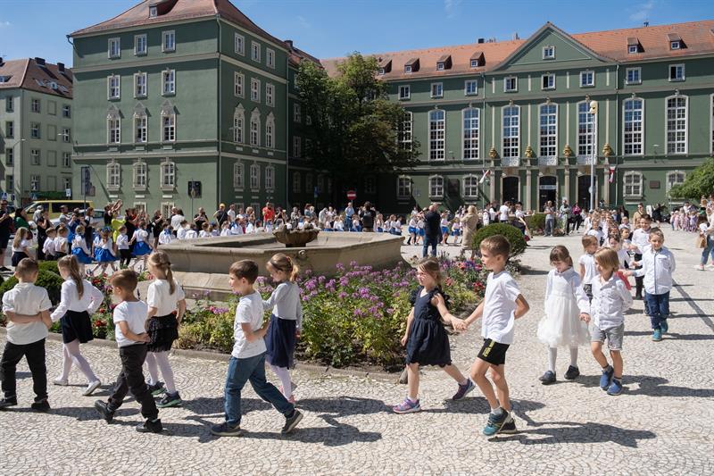 Taniec starszaków na placu przy budynku szczecińskiego magistratu stał się już tradycją tuż przed rozpoczęciem wakacji.