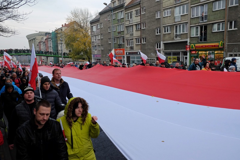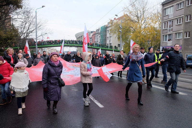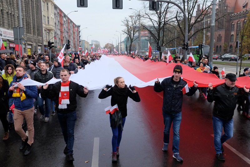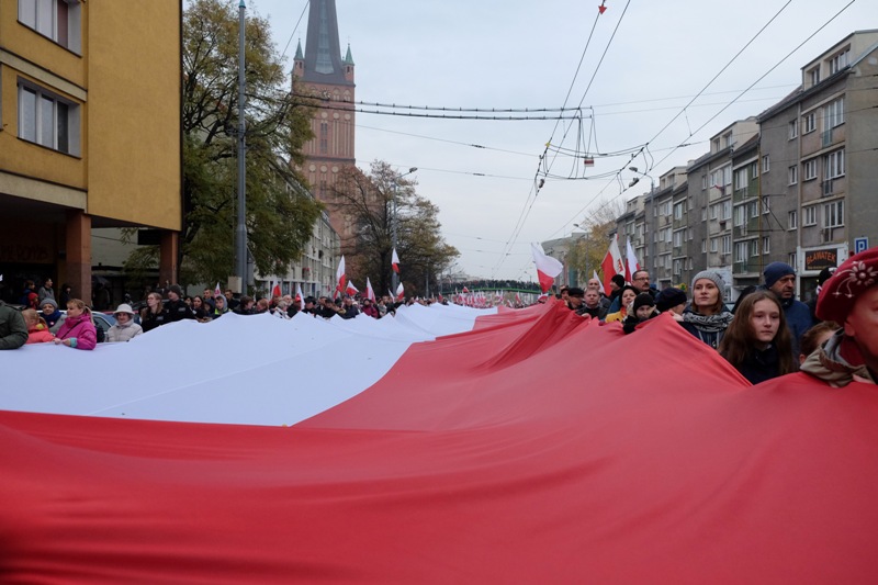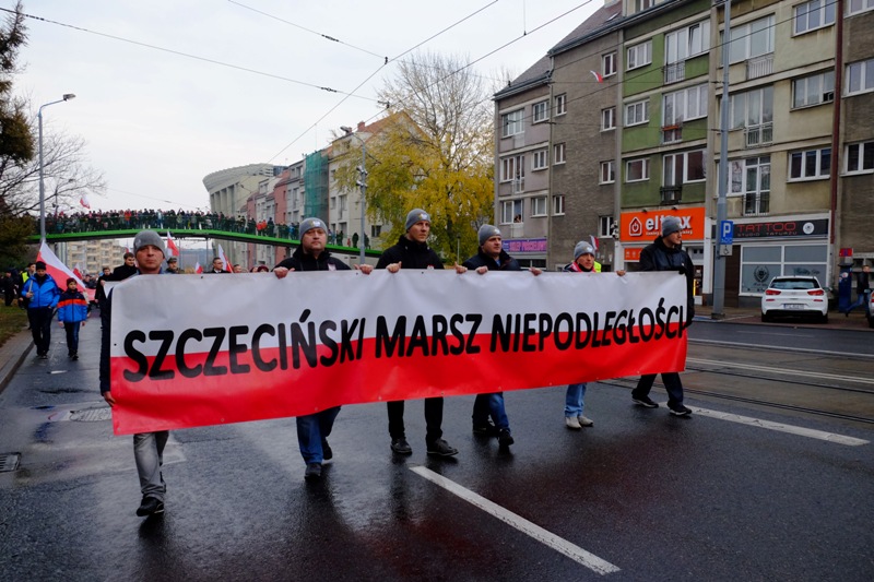 W setną rocznicę odzyskania przez Polskę niepodległości ulicami Szczecina przeszedł biało-czerwony Marsz Niepodległości.
