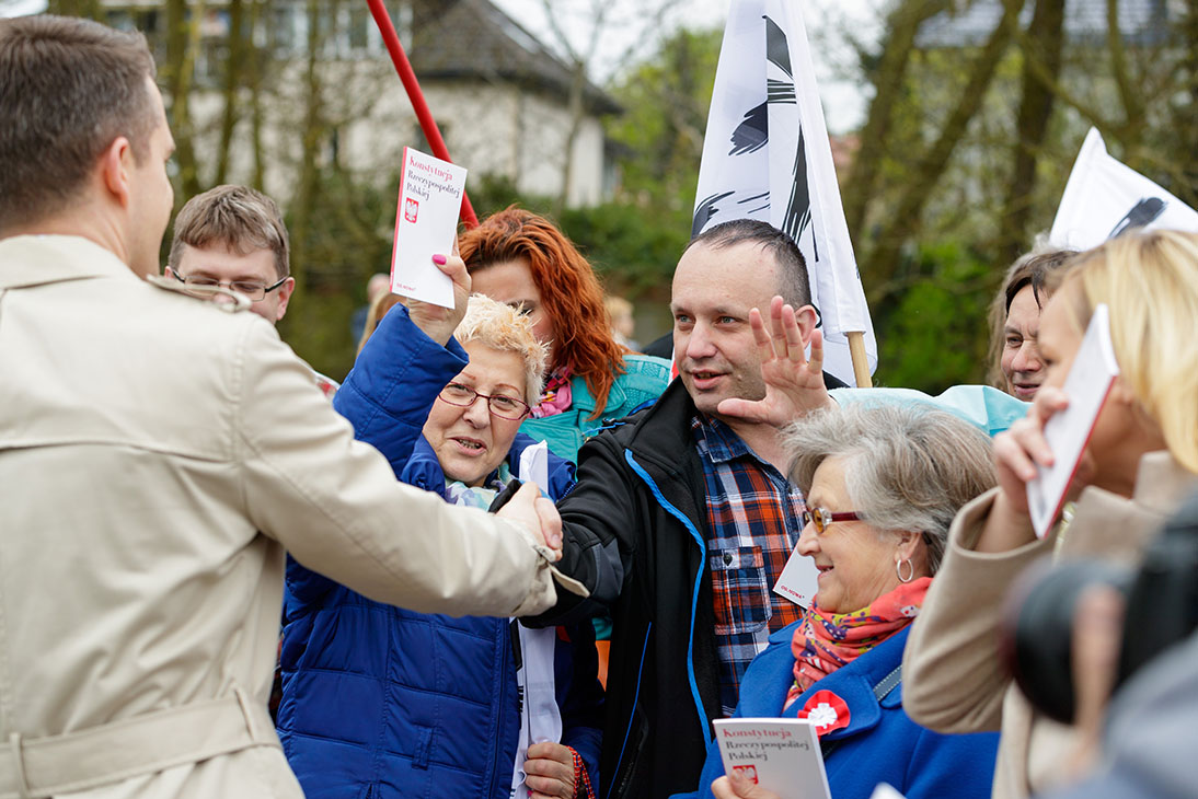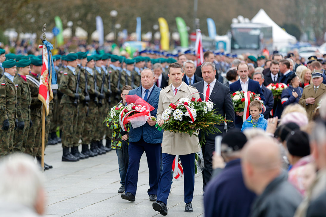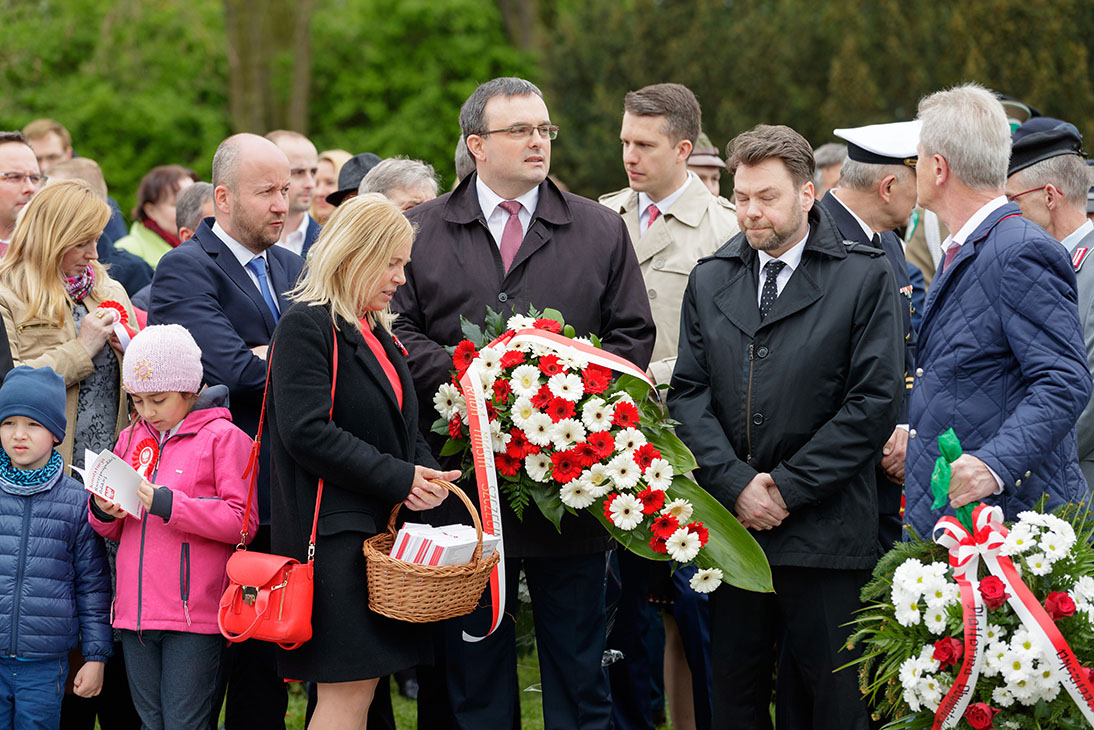 Wojewódzkie uroczystości patriotyczne z okazji 226. rocznicy uchwalenia Konstytucji 3 maja odbyły się w środę przy pomniku Czynu Polaków na Jasnych Błoniach w Szczecinie. Udział w nich wzięli przedstawiciele różnych organizacji, instytucji, żołnierze, kombatanci, parlamentarzyści, harcerze, uczniowie... Przebiegły spokojnie. Rozpoczęły się meldunkiem i hymnem narodowym. Po okolicznościowych przemówieniach delegacje różnych środowisk złożyły kwiaty pod pomnikiem.