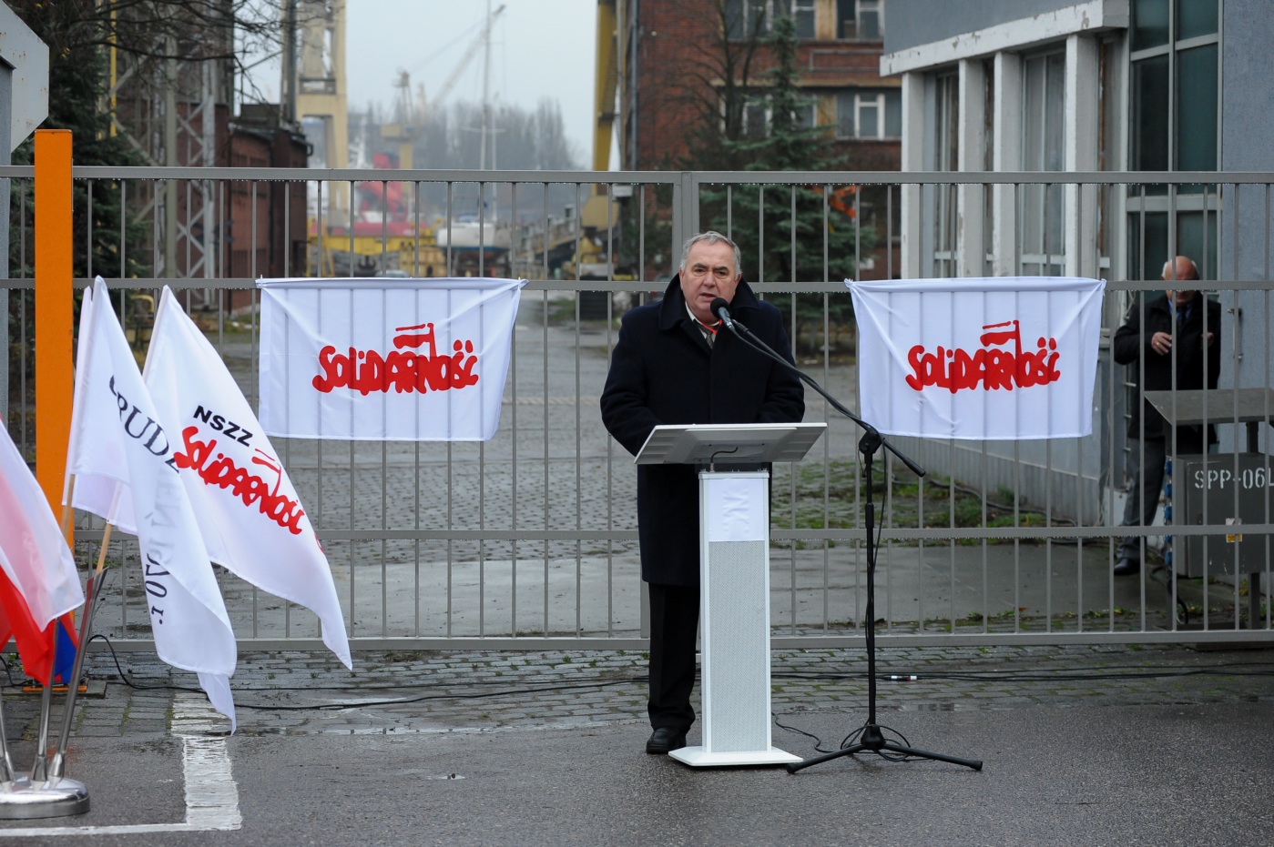 Wcześniej odbyły się uroczystości przed bramą główną Stoczni Szczecińskiej.