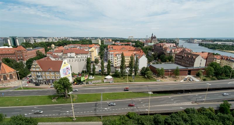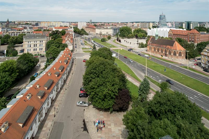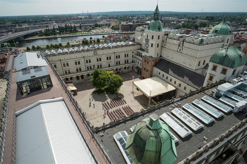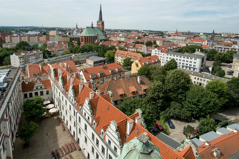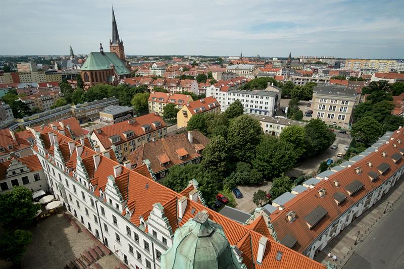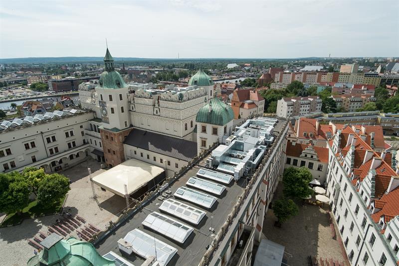 Tak wygląda Szczecin z widokowej wieży dzwonów Zamku Książąt Pomorskich. Od 1 lipca po remoncie można znów z niej podziwiać panoramę miasta.