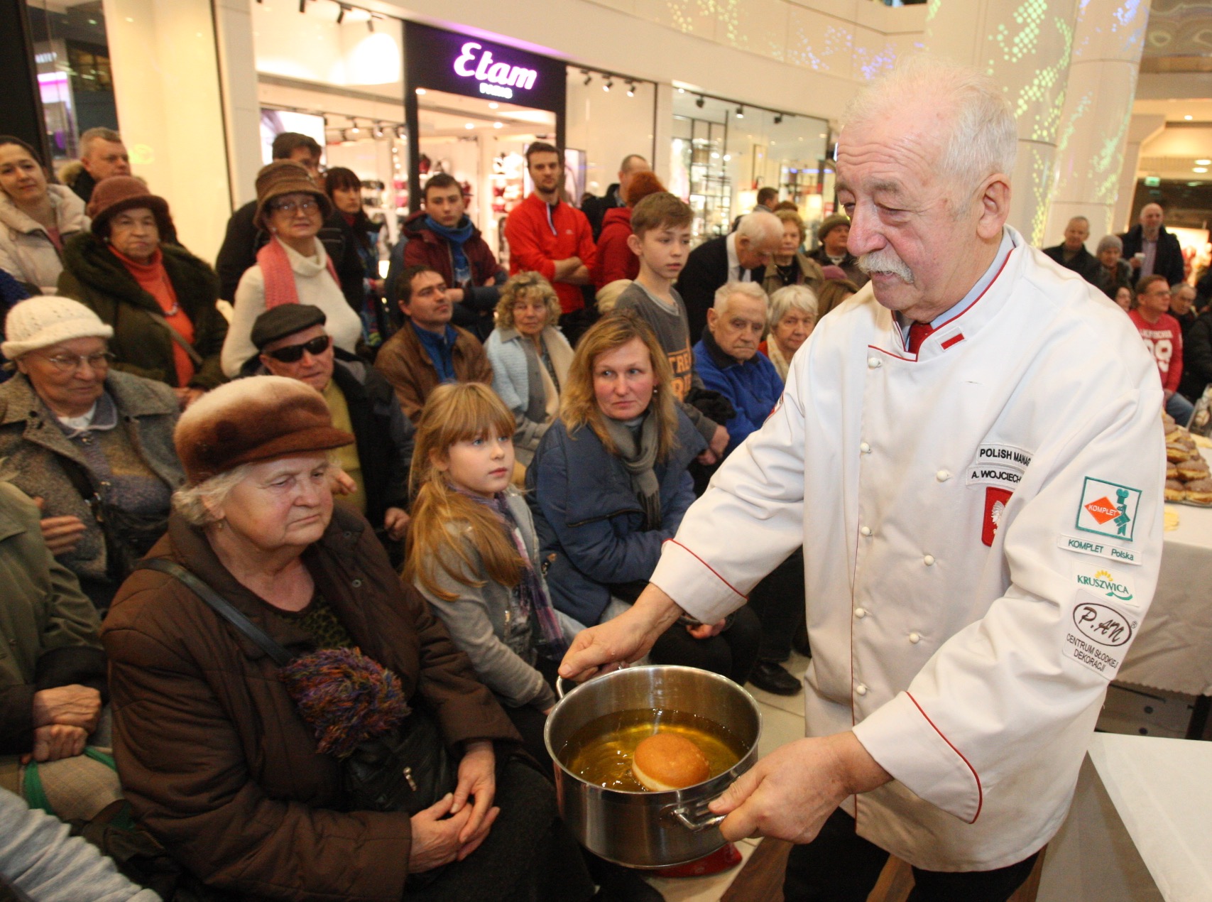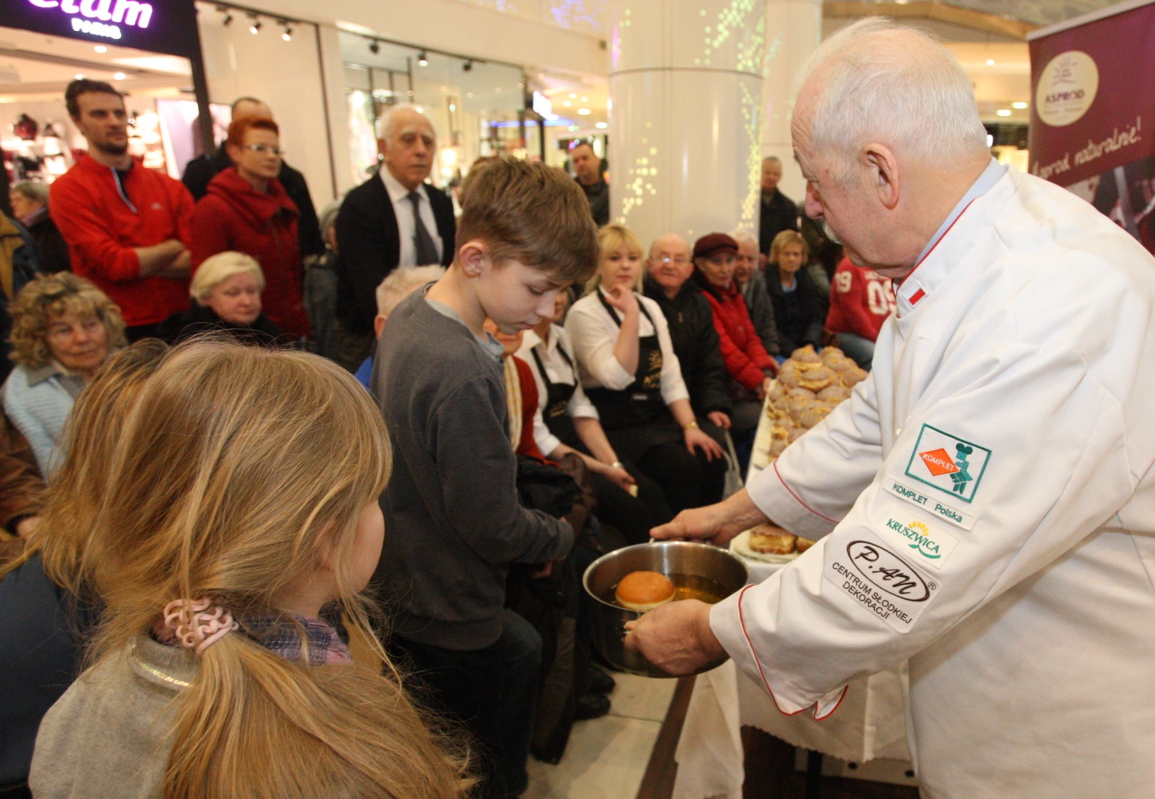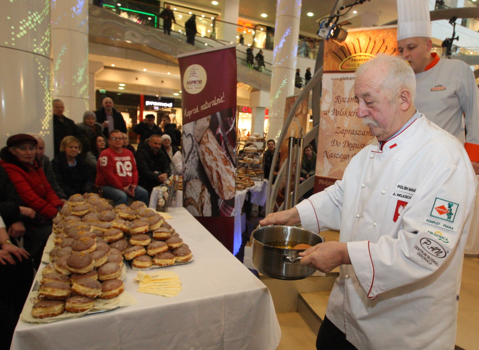 Mistrzowie cukiernictwa z Cechu Rzemiosł Spożywczych w Szczecinie pokazali w sobotę tajemnice przygotowania pysznych pączków. Odwiedzający mogli poznać najlepsze receptury i triki doświadczonych mistrzów kuchni. Dla chętnych był też konkurs jedzenia ciastek na czas.