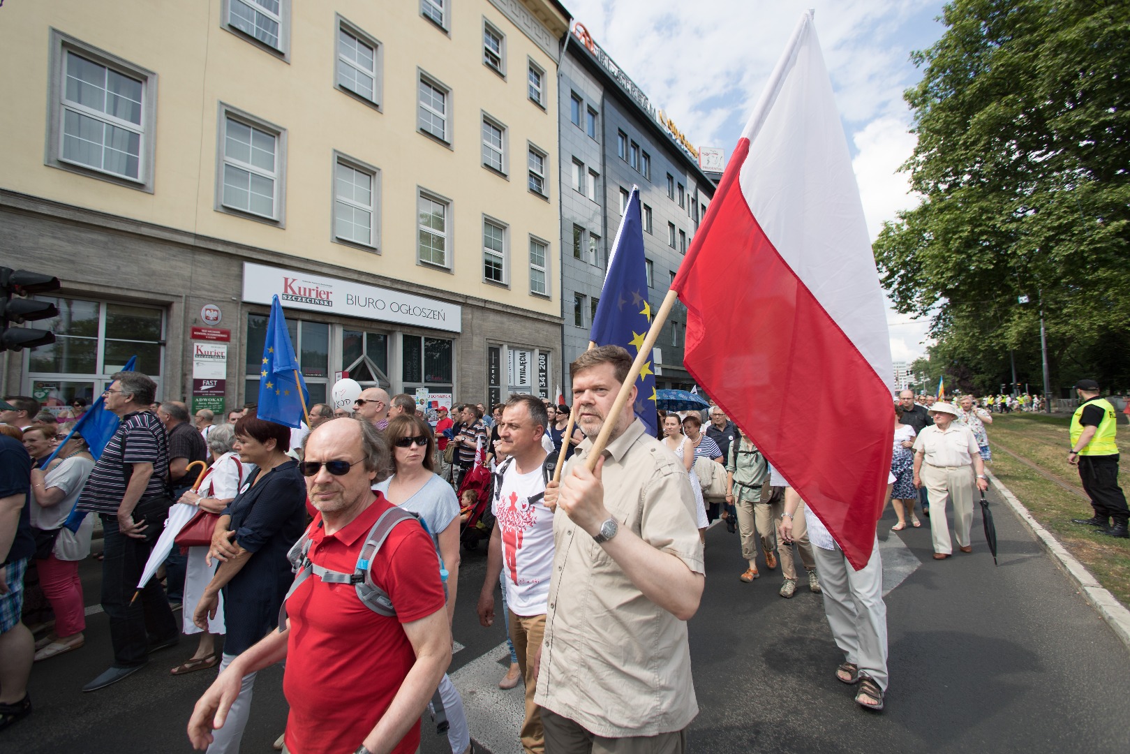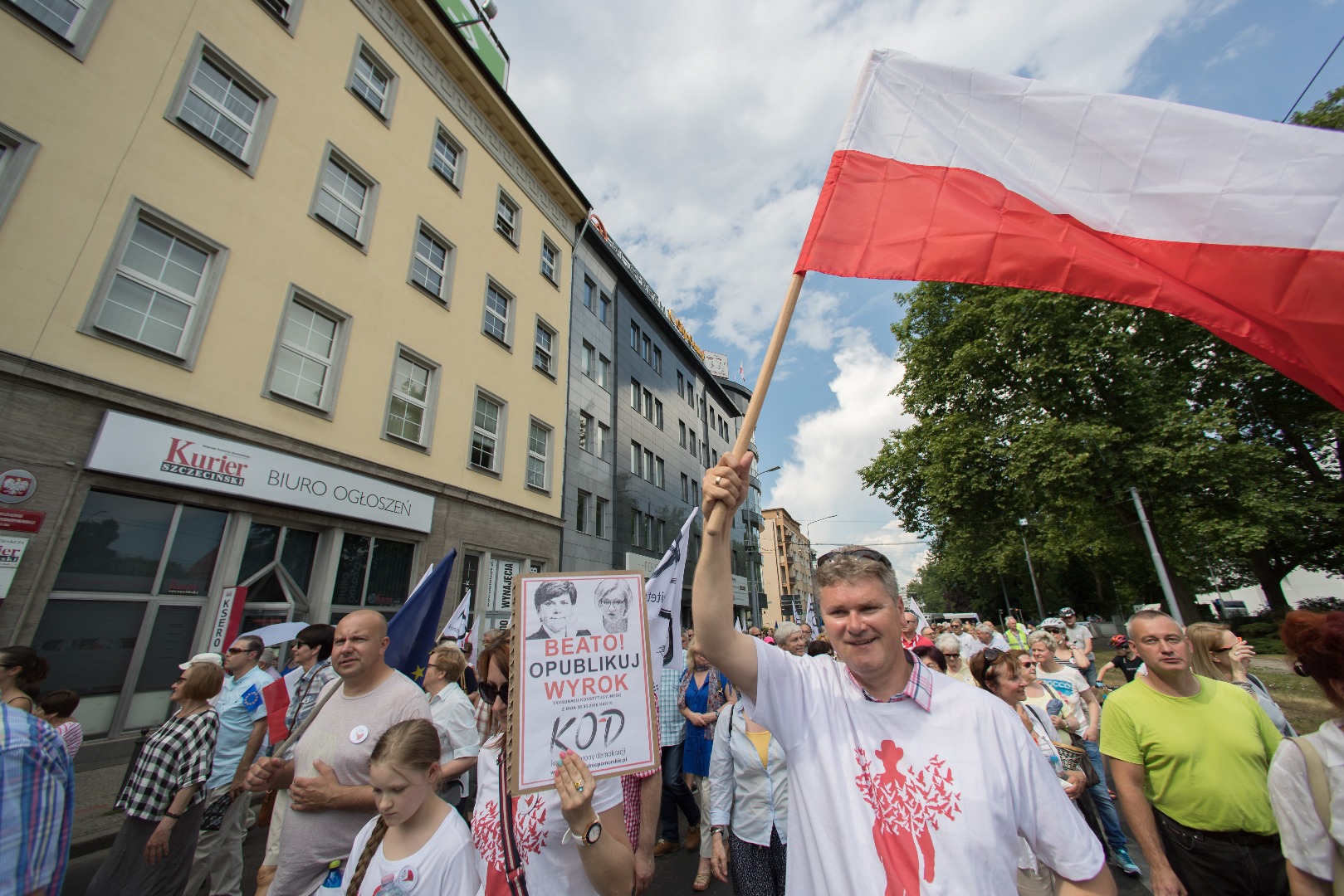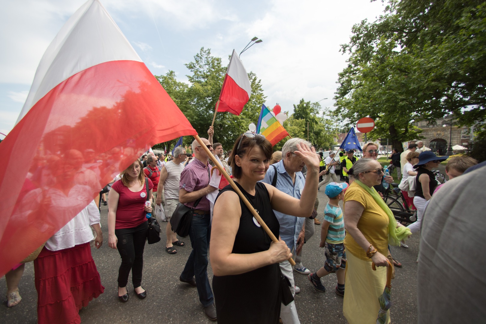 Wcześniej uczestnicy protestu przemaszerowali na Jasne Błonia z pl. Solidarności