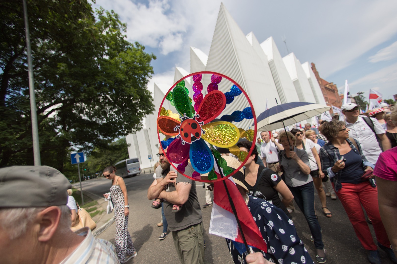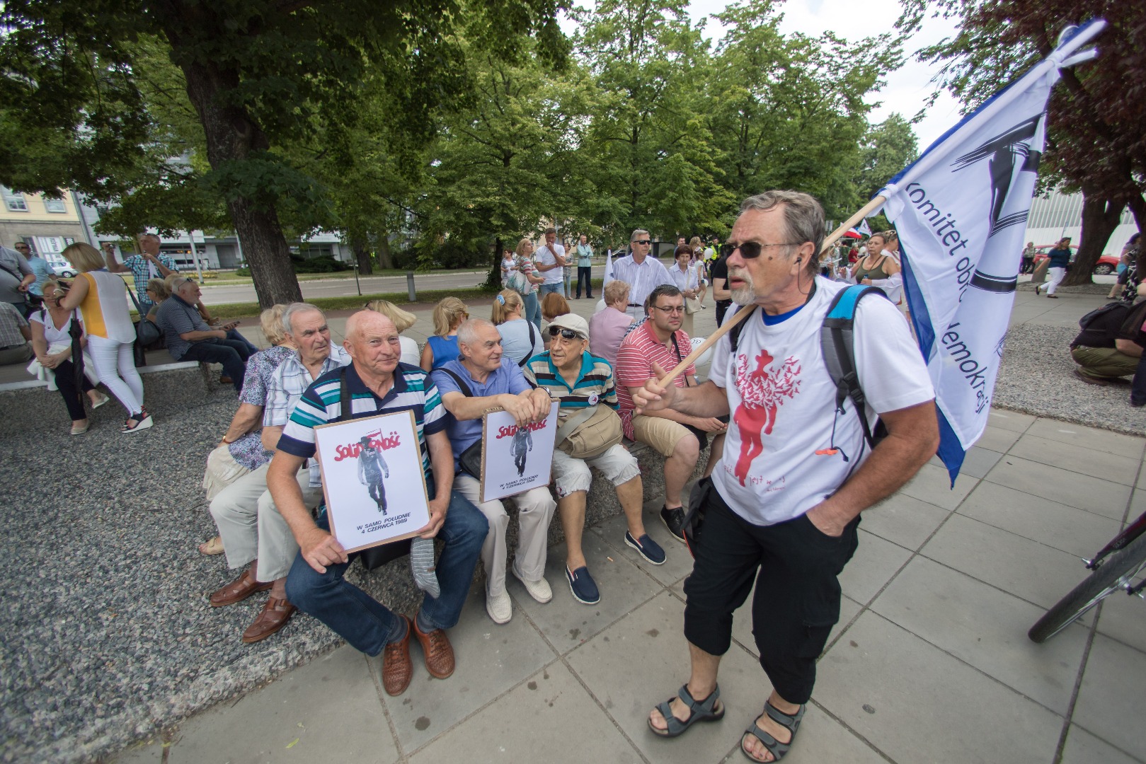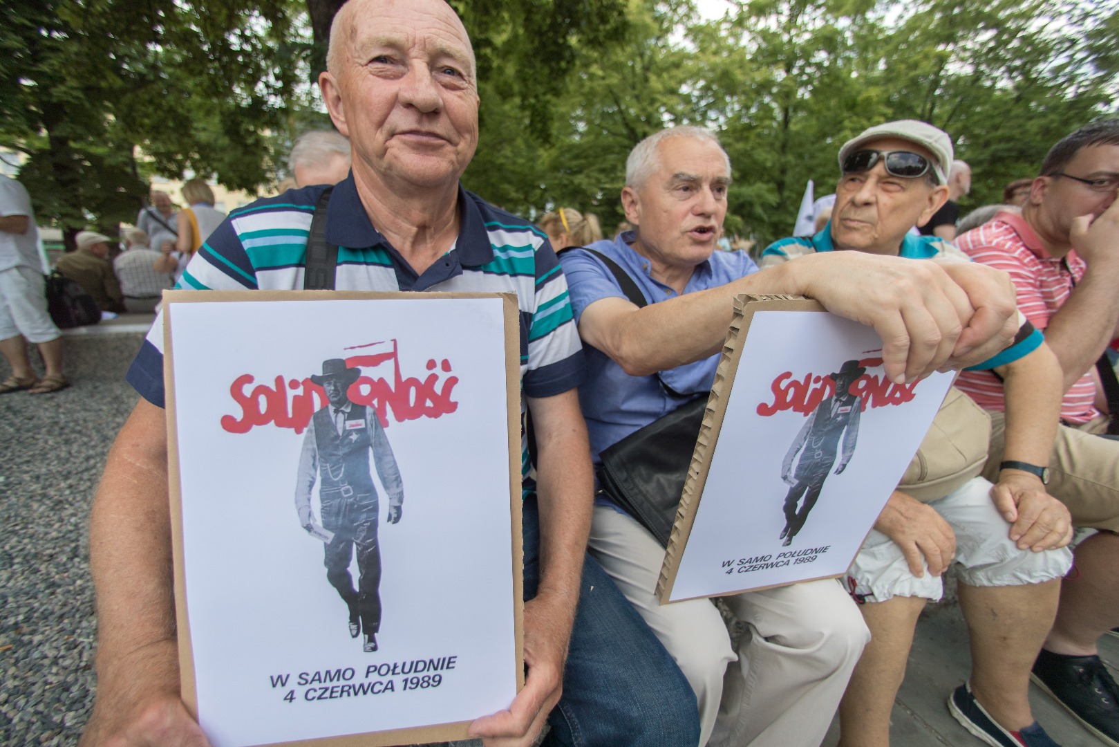 Łańcuch rąk, przy dźwiękach piosenki Johna Lennona - "Imagine" poprzedził toast wodą za wolność na spotkaniu Komitetu Obrony Demokracji na Jasnych Błoniach. Następnie punktualnie o godz. 17 zabrzmiał, podobnie jak na podobnych zgromadzeniach w całej Polsce, hymn państwowy.