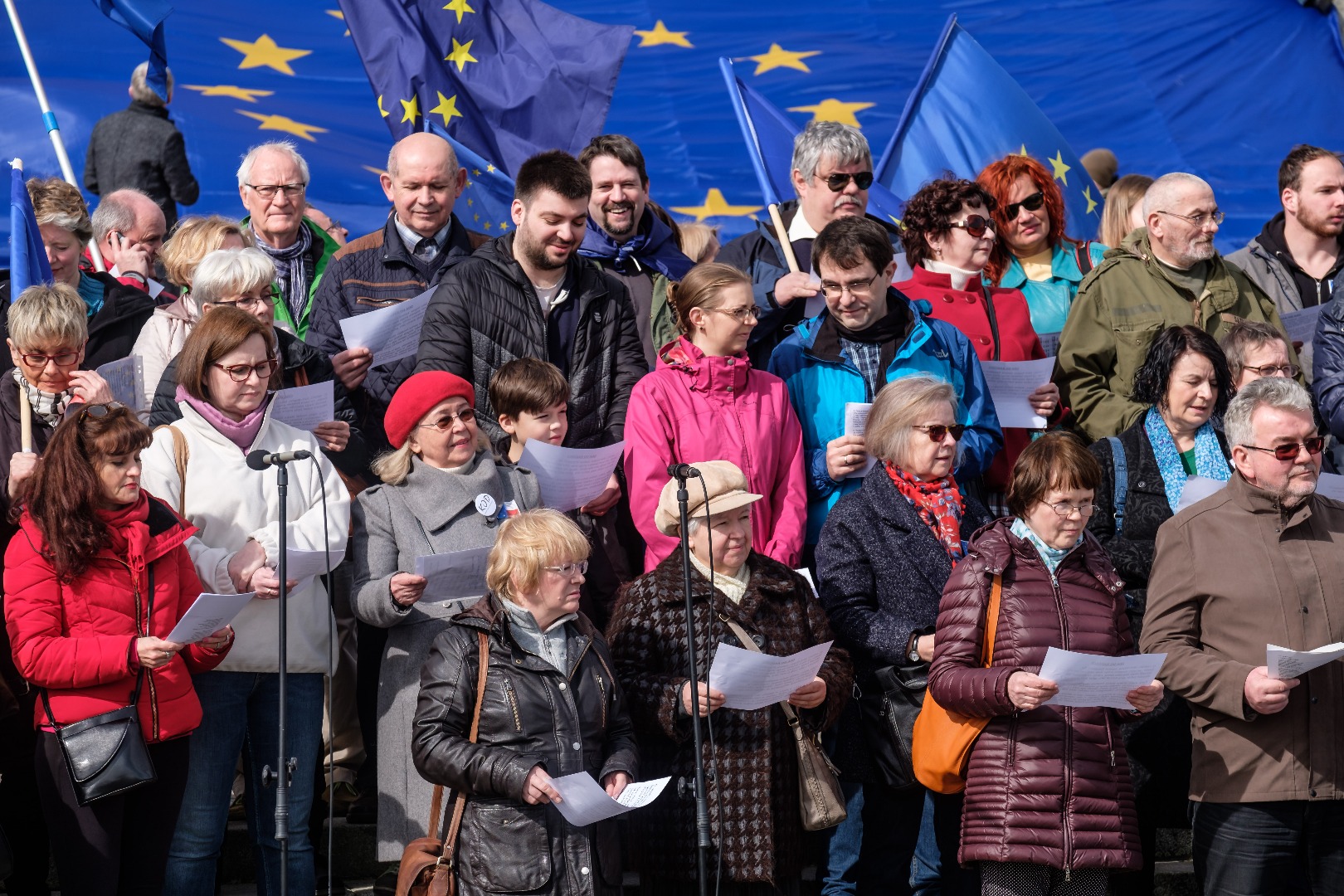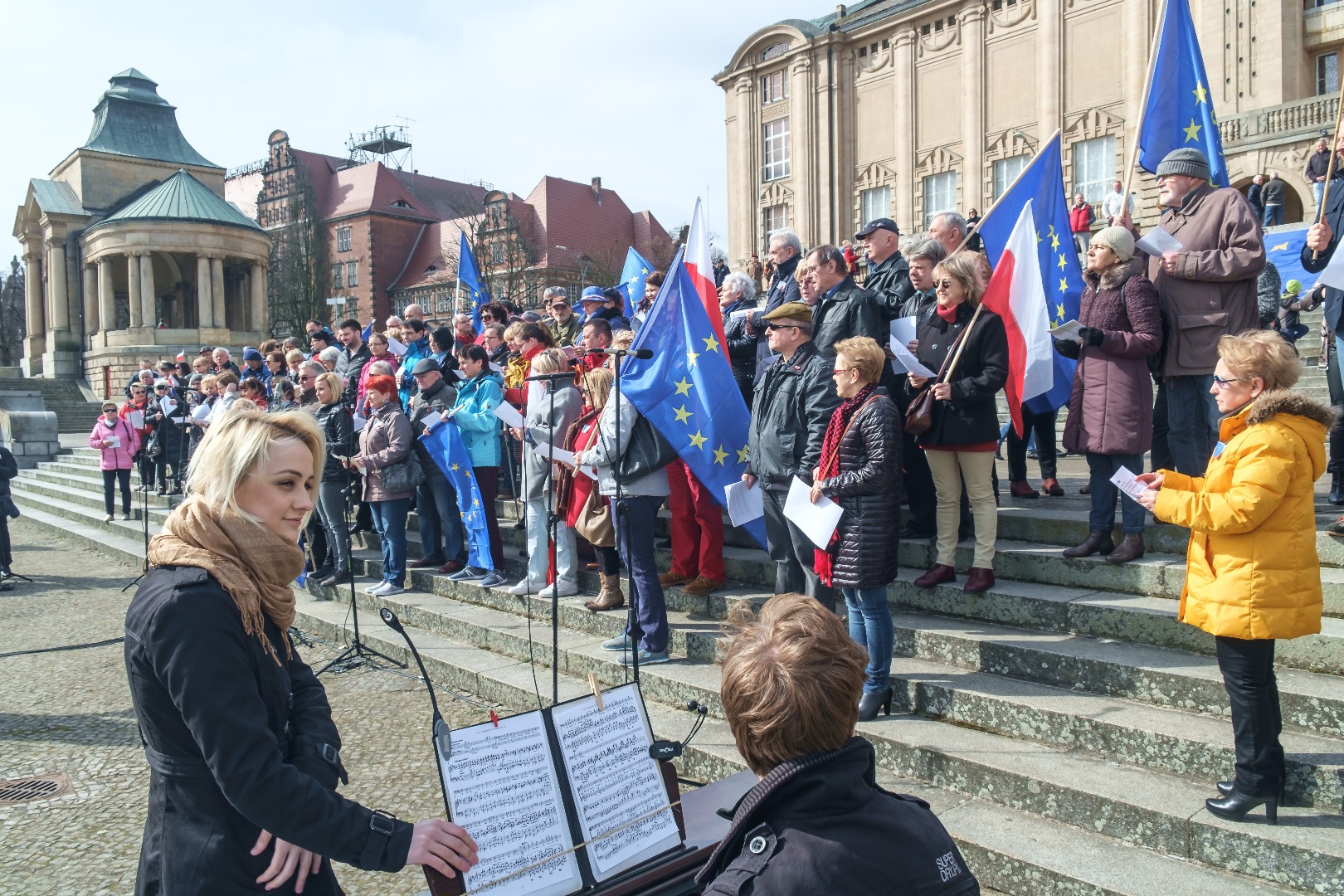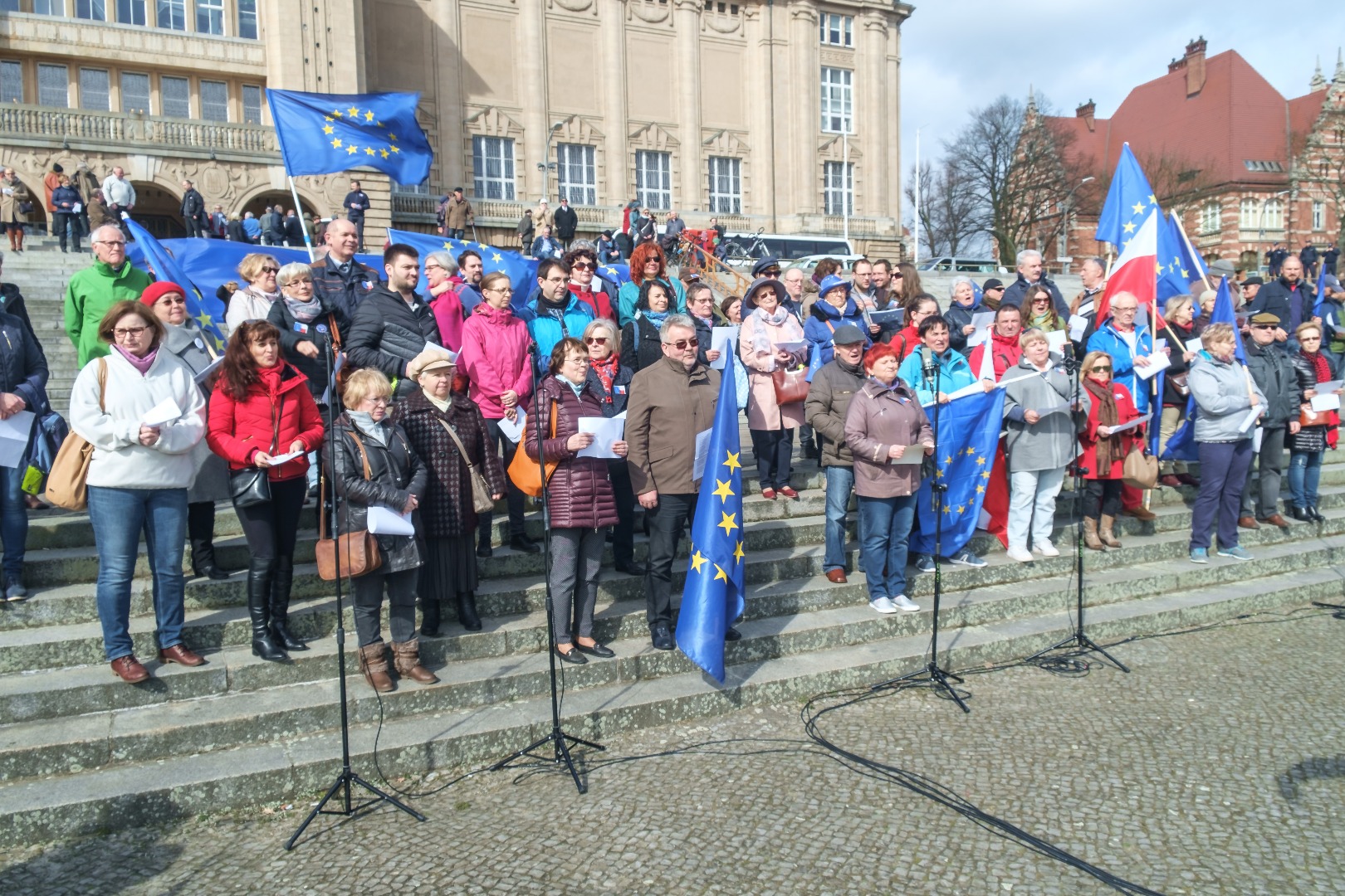W Szczecinie spotkanie odbyło się na Wałach Chrobrego. O g.12 zebrani odśpiewali hymn UE - "Odę do radości"