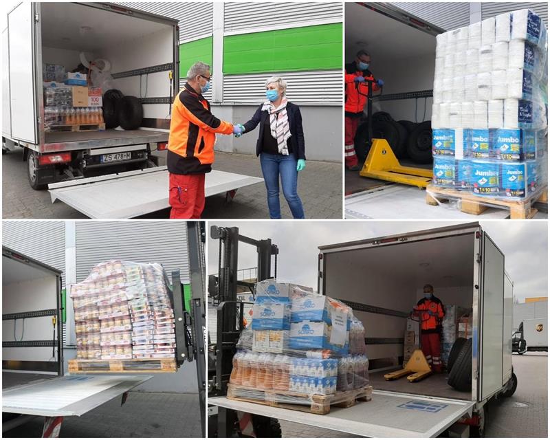 Wsparcie trafiło do Samodzielnego Publicznego Wojewódzkiego Szpitala Zespolonego, Samodzielnego Publicznego Szpitala Klinicznego nr 1 PUM, Samodzielnego Publicznego Szpitala Klinicznego nr 2 PUM, Samodzielnego Publicznego Specjalistycznego Zakładu Opieki Zdrowotnej „Zdroje” oraz Wojewódzkiej Stacji Pogotowia Ratunkowego w Szczecinie. Były to głównie produkty spożywcze, takie jak herbata, kawa, cukier czy mleko oraz produkty higieniczne: mydła, ręczniki papierowe, papier toaletowy czy środki czystości. Szpital przy al. Powstańców Wielkopolskich, oprócz produktów spożywczych i chemicznych, otrzymał również poduszki, kołdry i koce.