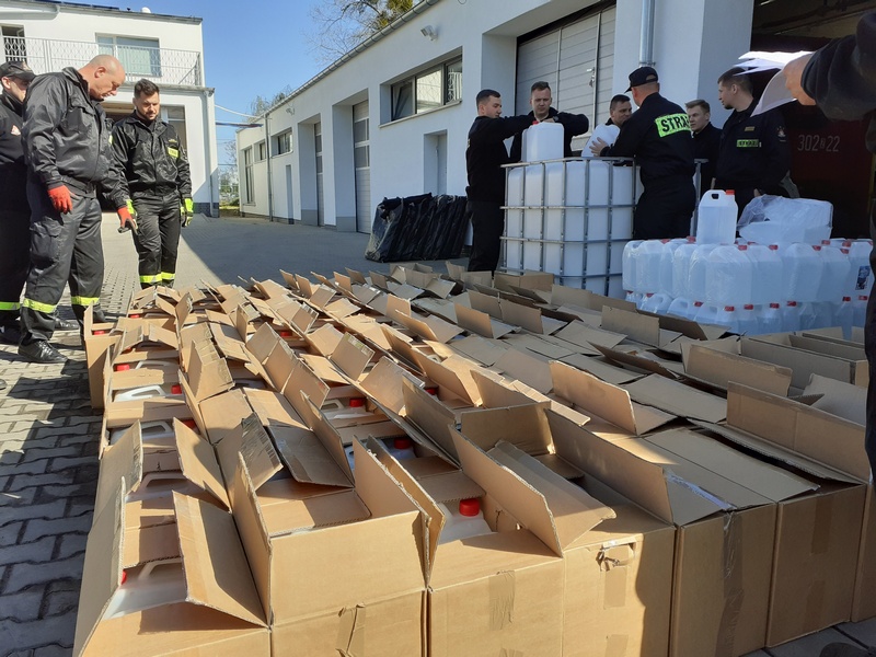 Funkcjonariusze KAS i Państwowej Straży Pożarnej w Szczecinie wyprodukowali 2 tys. litrów środka dezynfekującego.