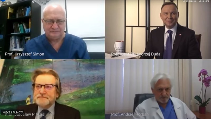 Prezydent rozmawiał w piątek na temat szczepień z lekarzami ekspertami: głównym doradcą premiera ds. COVID-19 prof. Andrzejem Horbanem, specjalistą chorób zakaźnych prof. Krzysztofem Simonem oraz byłym Głównym Inspektorem Sanitarnym Jarosławem Pinkasem. Zapis rozmowy został zamieszczony późnym wieczorem na profilu twitterowym Andrzeja Dudy.