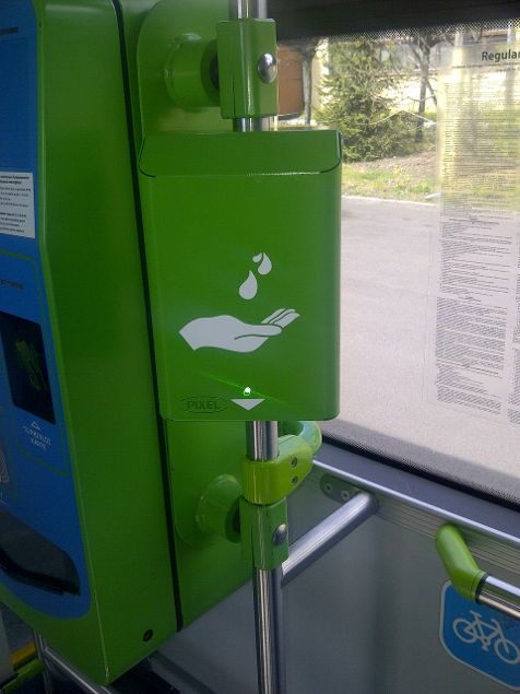 W środę nowość można spotkać na linii B. SPAD zapewnia, że urządzenie jest wydajne i daje możliwość bezdotykowego, szybkiego oczyszczenia rąk z wirusów i bakterii. Jest umieszczone przy drugich drzwiach. W najbliższym czasie na liniach obsługiwanych przez SPAD pojawi się 6 pojazdów z dezynfektorami.