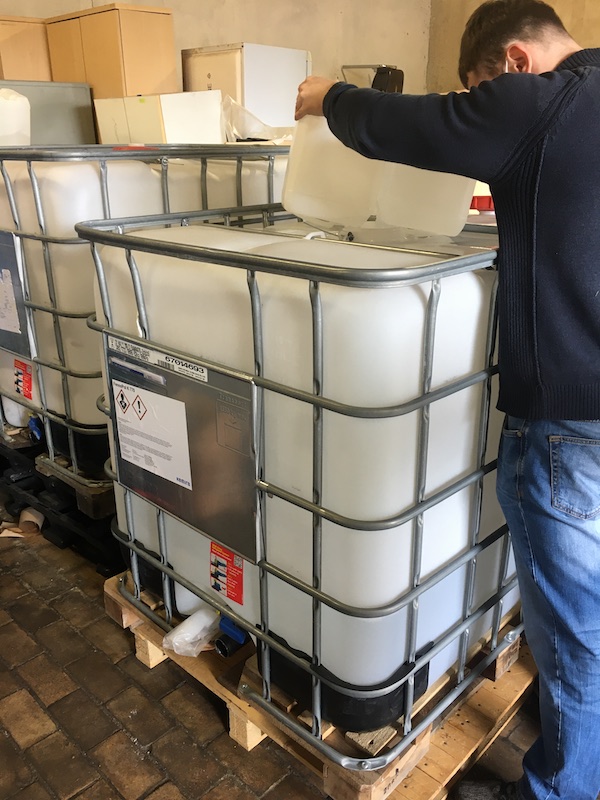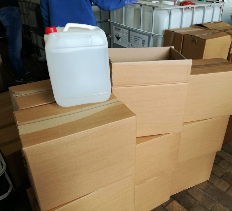 Zachodniopomorski Urząd Celno–Skarbowy docelowo przekaże 12 000 litrów alkoholu etylowego. Zostanie on rozlany do pojemników, w które WSSE wyposażyła Grupa Azoty (10 pojemników o pojemności 500 l). 12 Brygada Zmechanizowana wypożyczyła zaś mieszadła ze stali nierdzewnej, które posłużą do produkcji płynu dezynfekcyjnego.