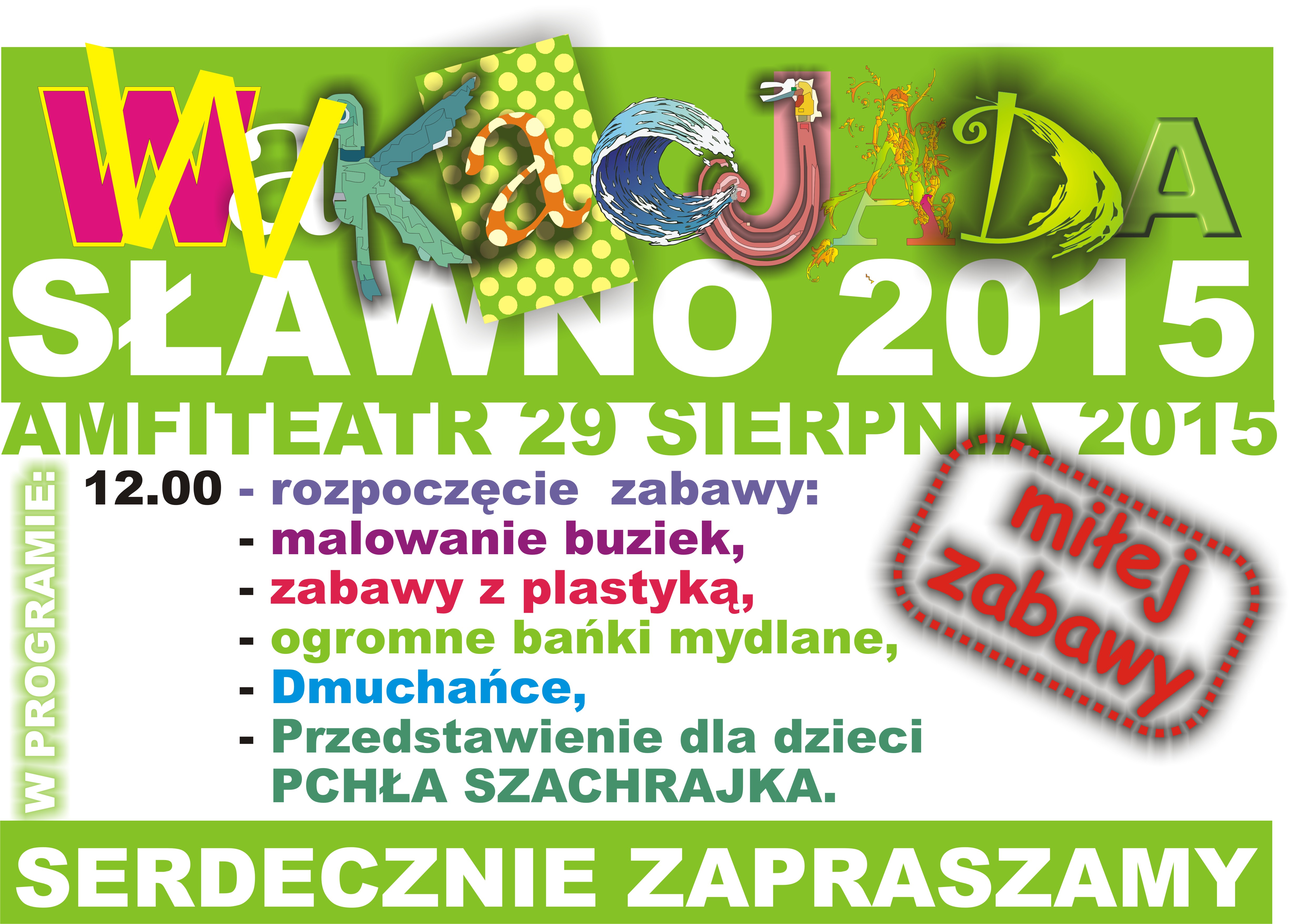 Sobotnie popołudnie najlepiej spędzić na świeżym powietrzu. Najlepiej w malowniczym miejscu, blisko domu, rodzinnie i aktywnie. Urząd Miejski w Sławnie oraz Sławieński Dom Kultury zapraszają na Wakacjadę 2015, w sobotę, 29 sierpnia od godz. 12.00 w Sławieńskim Amfiteatrze.