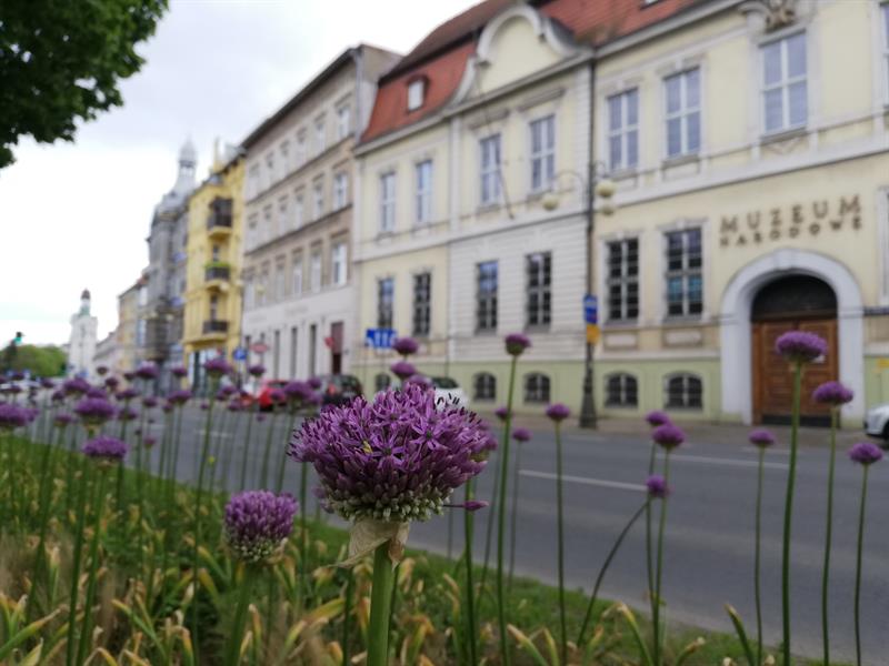 W dawnej alei kwiatowej znów zaszła zmiana. Nie tylko kolorystyczna. Po krokusach, narcyzach i tulipanach, teraz rozkwitły czosnki olbrzymie. Na obrzeżach „zielonej wyspy" na pl. Żołnierza Polskiego uwagę przyciągają teraz efektowne fioletowe kule.