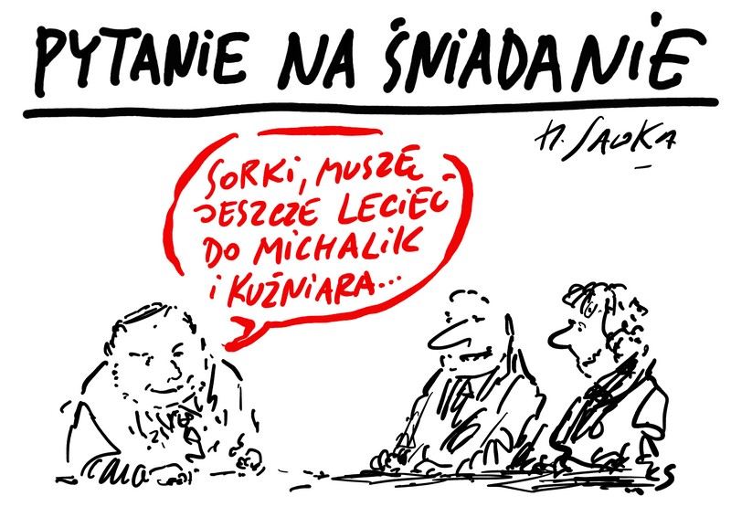 do ...[Z twarzy podobny do nikogo...]... Prawie trafiłeś! To kolejna perełka W. Sz. mistrza H. Sawki. Niby niszowy kanał TVP2, do którego "main stream"-owe głowy "prące na szkło" w TVP1 nie zaglądają. Jedyny program mówiący o wszystkim tylko nie o polityce. Kanał , w którym udało się dobrać samych profesjonalistów prezenterów. Czyli gospodarze programu "Pytanie na śniadanie", zapraszają ciekawych gości i prowadzą rozmowy na przeróżne ciekawe tematy, jeszcze "idealnych nikt"-ów. Naprawdę, tym samym zbierają widzów do siebie z całego spektrum środowisk Najjaśniejszej RP. Mają niekwestionowaną oglądalność! Od wnuka , po dziadka. Ten szkicowy jegomość-gość , jest po mistrzowsku upodobniony , do niby (wybierz sam) prezia, niby do wielebnego z archidiecezji z Gdańska, niby do noblisty z Gdańska, niby do posła walczącego z krzyżakami, itd. itp. w ocenie wielu obywateli także uważanych za "idealnych nikt"-ów.