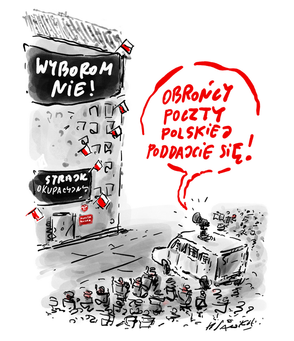 Tym razem p. Sawka pojechał. Gdy czytam o obrońcach Poczty Polskiej to zaraz widzę obraz obrony Poczty Polskiej w Gdańsku 1 września 1939 r. i los jej obrońców. Użycie takiego sformułowania przez p. Sawkę w rysunku satyrycznym po prostu boli.