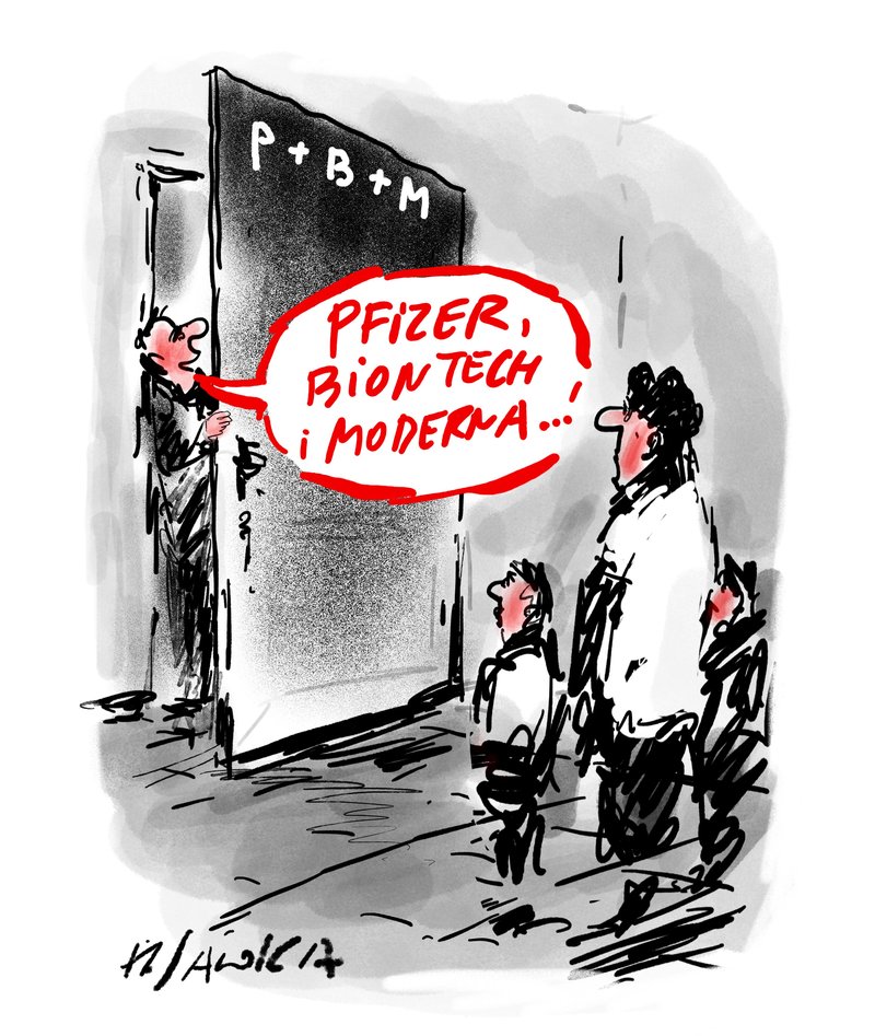 Tym trzem "królom PO kolędzie" (@adam, @sid,@ ,,,.) się PO_pier..ło oglądając tylko TVN i malunki Sawki. Widzą ci UB_atele; kolędy, klechy i "kabaret Czesuaf", jako przyczynę tych widzeń sugeruję nadmierne używanie "proszka-nitraszka"....... Ja widzę na tym artystycznym dziele przychodnię lekarską i doktora-marszałka, który mówi; (teraz wchodzą) PFIZER, BIONTECH i MODERNA ..! Te kropki to w domyśle; - przygotować "toksyczne" koperty.... P.S. - czekałem aż "W.Cz, SzCz" wyjaśni kiedy się śmiać oglądając rysunek.
