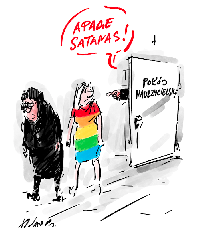 totalnie idiotyczny rysunek!!!!!!ale wiadomo kto tworzył... na "Klatwę" to ten dziadunio nie ma pomysłu by bronić godnosci człowieka i poniżania świetości??????????????????