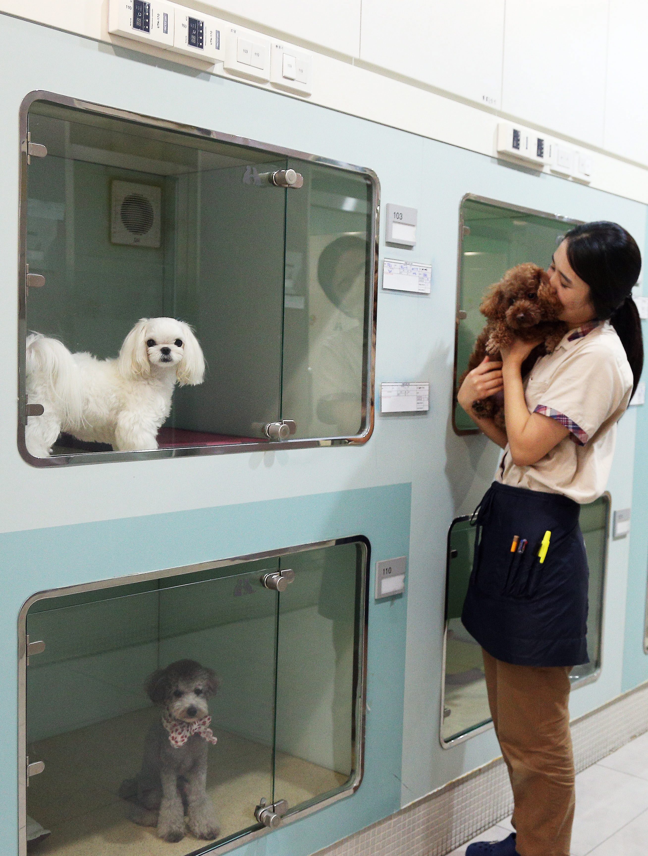 Hotele dla psów - jak ten na zdjęciu w stolicy Korei Południowej Seulu - w okresie wakacyjnym nie narzekają na brak wolnych miejsc. Klimatyzowane i przeszklone boksy muszą wystarczyć psom, podczas gdy ich właściciele wyjadą na słoneczny urlop.