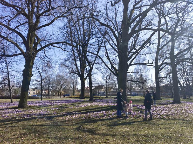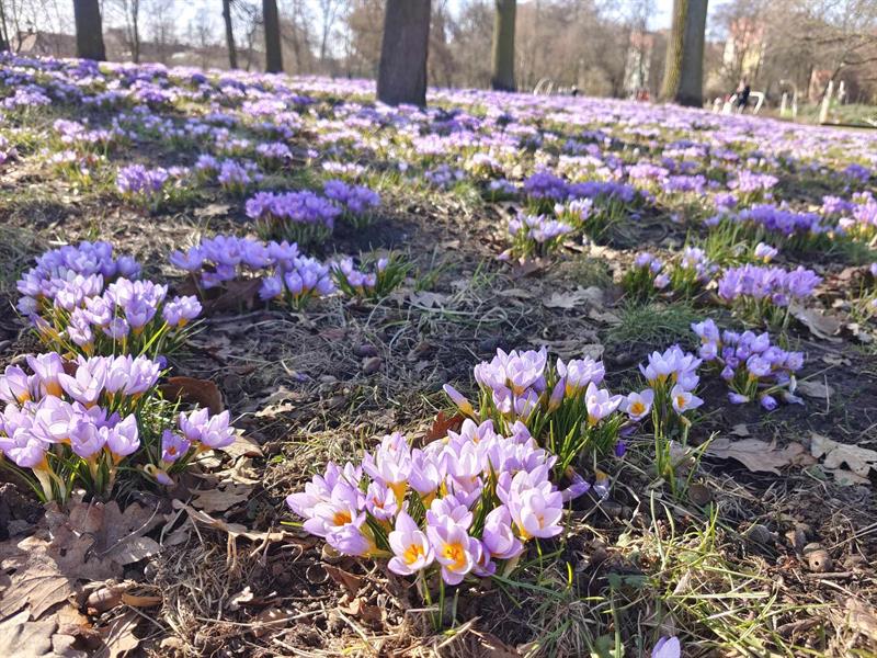 Warto wybrać się do parku Jagiellońskiego w Stargardzie, gdzie można podziwiać przepięknie kwitnące, fioletowe krokusy.