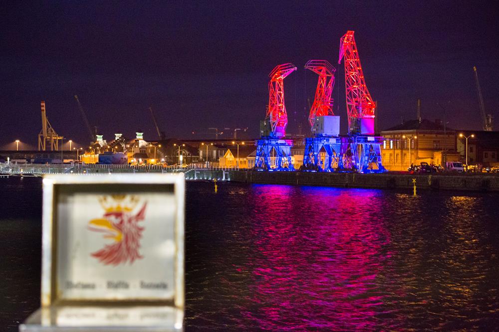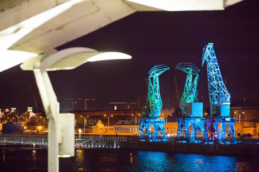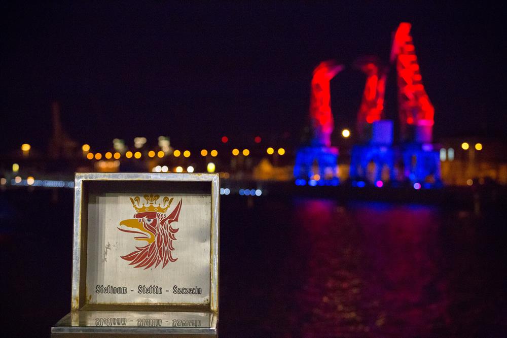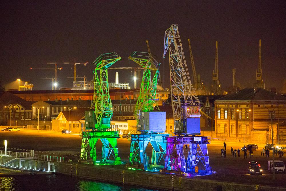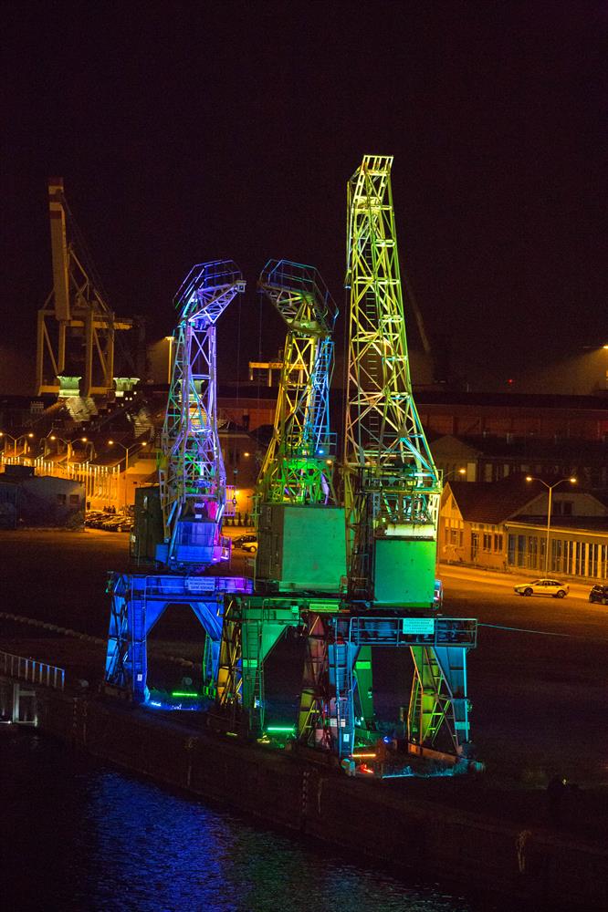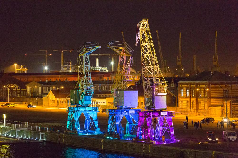 Zabytkowe dźwigi na szczecińskiej Łasztowni zyskały nowe oświetlenie. System lamp jest ekologiczny i można nim sterować przy pomocy smartfona.