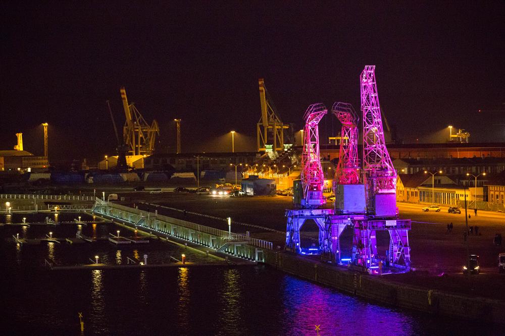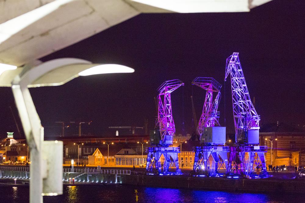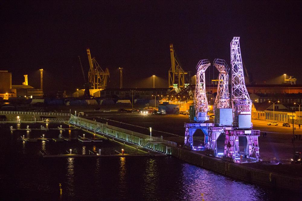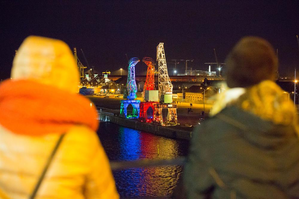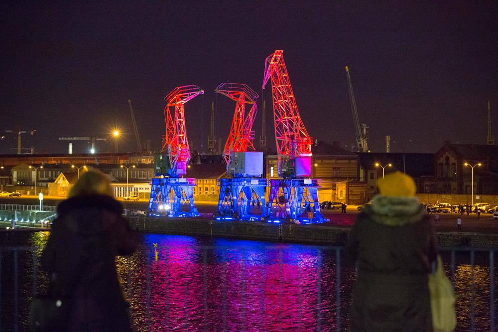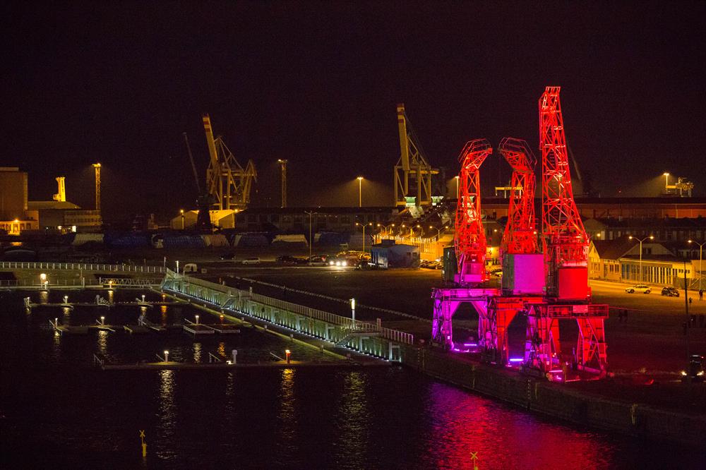 Zabytkowe dźwigi na szczecińskiej Łasztowni zyskały nowe oświetlenie. System lamp jest ekologiczny i można nim sterować przy pomocy smartfona.