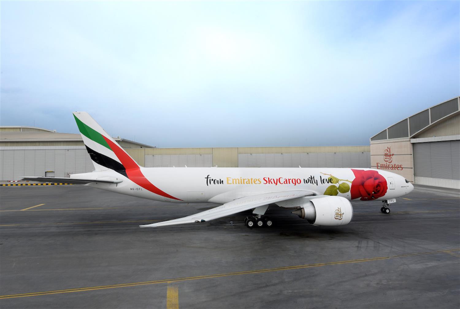 Z okazji walentynek Emirates SkyCargo zaprezentowało specjalną kalkomanię z wizerunkiem róży na jednym ze swoich samolotów towarowych Boeing 777-F. To pierwsza tego rodzaju dekoracja przewoźnika, która przypomina, że wspiera branżę kwiaciarską, transportując świeże rośliny na całym świecie.