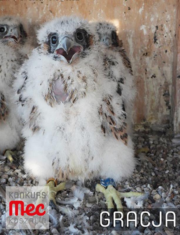 MEC ogłosił konkurs na imiona dla ptaków. Spośród propozycji, które napłynęły, wybrano cztery zdaniem wielu najtrafniejsze. Młode ptaki zostały już zaobrączkowane. Przy okazji okazało się, że to dwie samice i dwa samce. Wybrane w drodze głosowania 5264 internautów imiona będą honorowane na całym świecie, przypisane są bowiem do ptaków z zaewidencjonowanymi obrączkami. Proces obrączkowania przeprowadzili pasjonaci ze Stowarzyszenia na rzecz Dzikich Zwierząt Fundacji „Sokół” z Włocławka, które nadzoruje to, co się dzieje w koszalińskiej budce lęgowej. ©℗