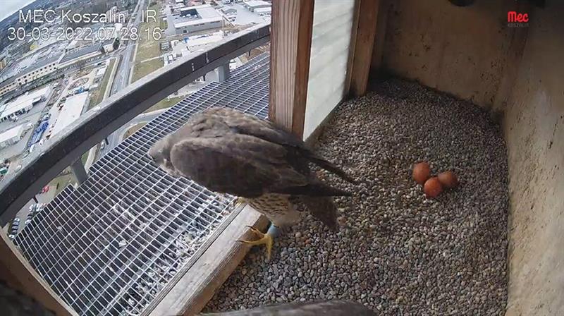 W pierwszym roku bytowania w niej para dochowała się trzech pisklaków. W następnych latach samica złożyła kolejne jaja. W 2020 roku było ich aż 5, co eksperci określili jako ewenement na skalę światową. Warunki ptakom najwyraźniej odpowiadają, bo 25 marca w monitorowanej budce na kominie pojawiło się pierwsze tegoroczne jajo. Dwa dni później było kolejne, a teraz są już trzy.