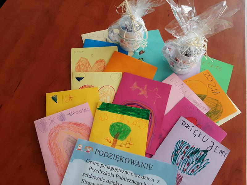 Na zakończenie wspólnych zajęć nastąpiła wymiana prezentów: strażniczki wykonywały na rączkach zainteresowanych przedszkolaków okolicznościowe pieczątki i obdarowały je kolorowankami związanymi z realizowanym tematem „Nieznajomy”, maluchy natomiast zrewanżowały się strażniczkom własnoręcznie zrobionymi laurkami i kubeczkami z symbolem magnolii.