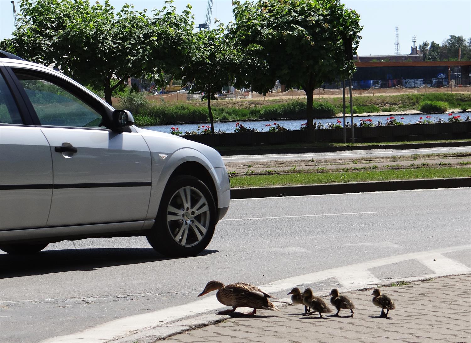 Niecodzienni przechodnie niekoniecznie na przejściu dla pieszych budzili zaciekawienie przejeżdżających tamtędy kierowców, którzy na ich widok reagowali jednak prawidłowo, zdejmując nogi z pedałów gazu i zatrzymując się, by tę wędrującą kaczą gromadkę przepuścić. ©℗