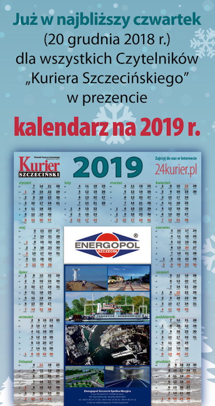 Jeżeli ktoś z Państwa nie ma jeszcze kalendarza na 2019 r., zapewne zainteresuje się naszą ofertą. Duży ścienny kalendarz zawierający spis imion, przypominający o kolejnych świętach będzie dołączony do „Kuriera Szczecińskiego” w najbliższy czwartek. Zatem wystarczy kupić gazetę z datą 20 grudnia. W niej znajdą Państwo prezent w postaci kalendarza na 2019 r.