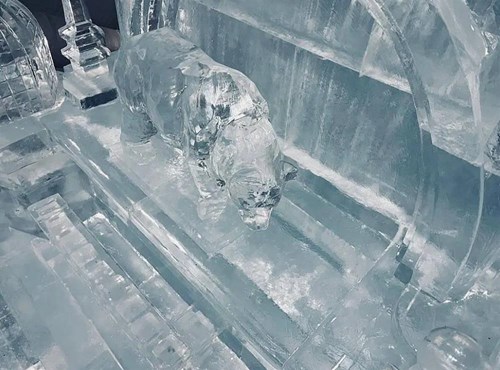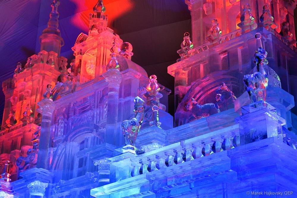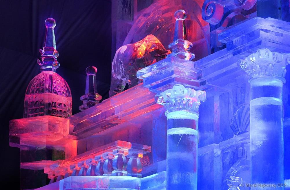 Nad misternie wyciosaną i wyciętą z lodowych brył monumentalną katedrą, jak w hiszpańskim oryginale, wznoszą się bogato zdobione, nieco przysadziste wieże.