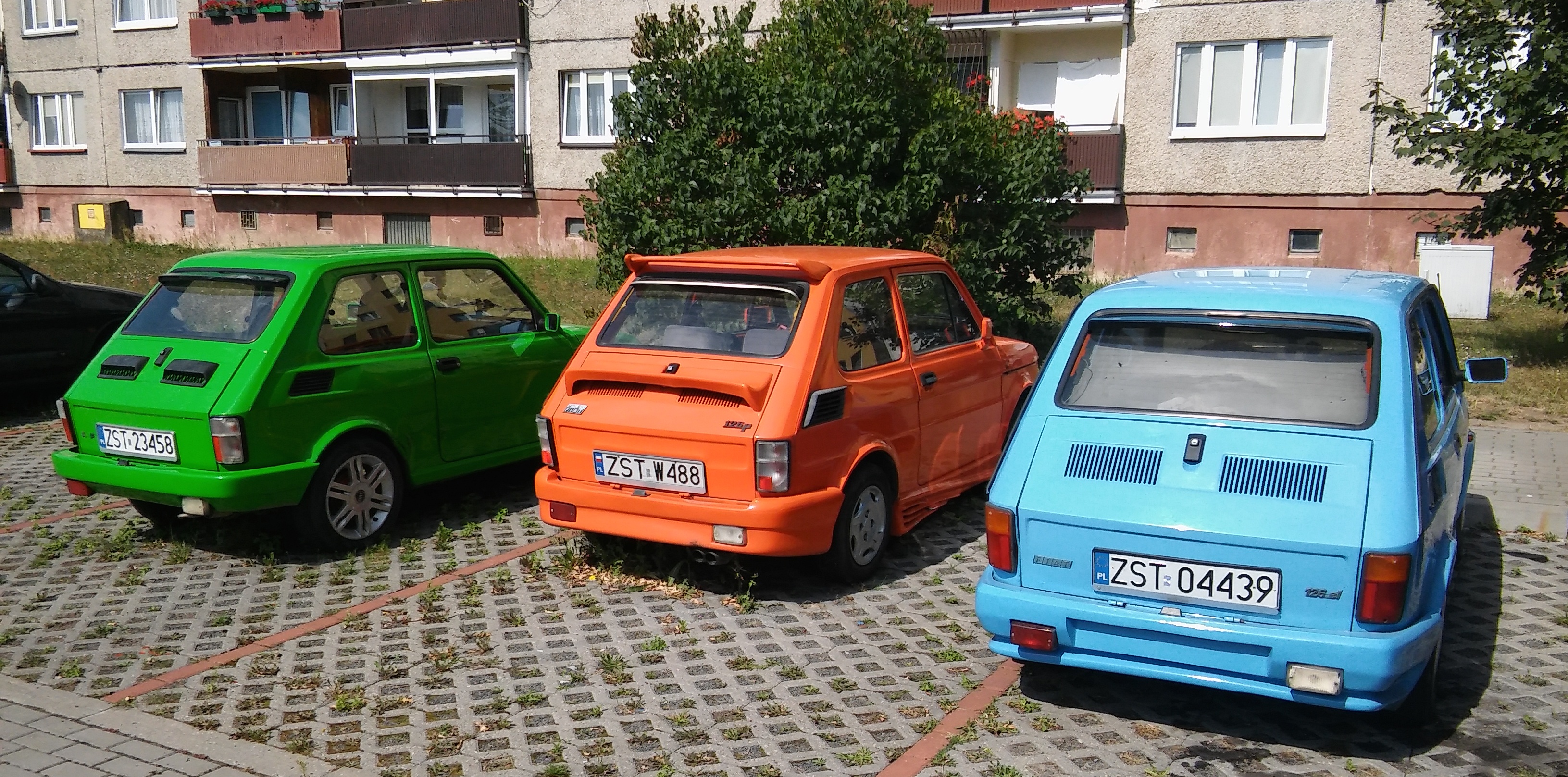 Trzeba przyznać, że bardzo ładnie prezentują się kolorowe fiaty 126P na parkingu przy ul. Pogodnej w Stargardzie. Dawniej taki widok nikogo by nie zdziwił. Dzisiaj jednak rzadko można już ujrzeć „małego fiata”. A już obok siebie w trzech egzemplarzach i różnych kolorach – to naprawdę niecodzienny obraz współczesnej ulicy. ©℗