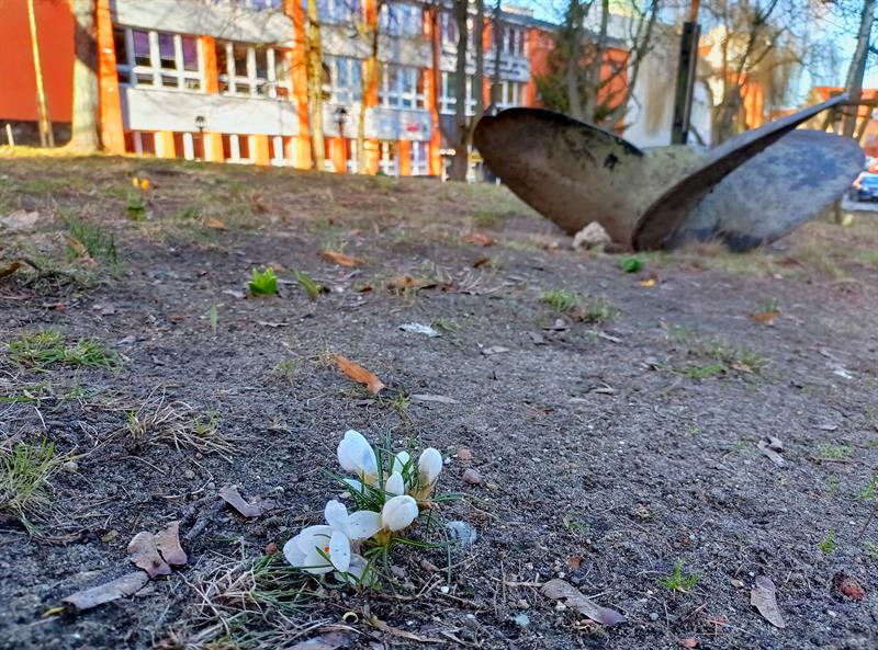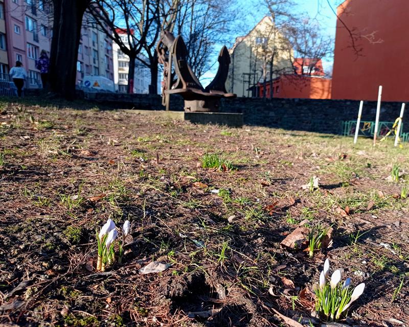 Wśród nich również krokusy. Także w miejscach mniej oczywistych niż Jasne Błonia. Czyli choćby w bliskości morskich akcentów - kotwicy oraz okrętowej śruby - wtopionych w jeden ze skwerów Starego Miasta.