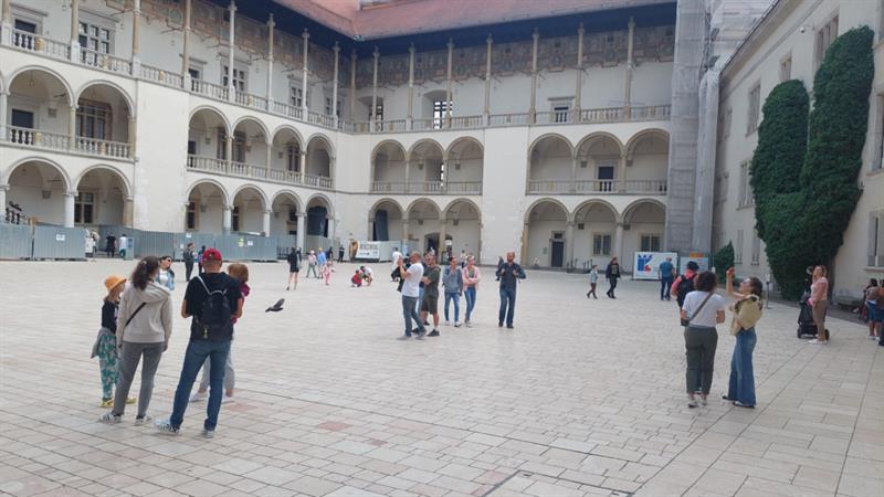 – W tej chwili Zamek Królewski na Wawelu jest w pełni okresu urlopowo-wakacyjnego; turystów nie brakuje. Wawel zaprasza do Ogrodów Królewskich na odbywającą się plenerową wystawę rzeźb Zdzisława Beksińskiego. To pierwszy monograficzny pokaz poświęcony wyłącznie rzeźbie tego artysty. Wawel to główne dwie atrakcje: Zamek Królewski oraz Katedra Wawelska. Najbardziej oblegany jest imponujący rozmachem i pięknem renesansowy dziedziniec zamku. Jest on dostępny bezpłatnie na wystawy, natomiast należy wykupić bilety. Zamek Królewski na Wawelu jest częścią światowego dziedzictwa kultury UNESCO – mówi Konrad Niemczyk.