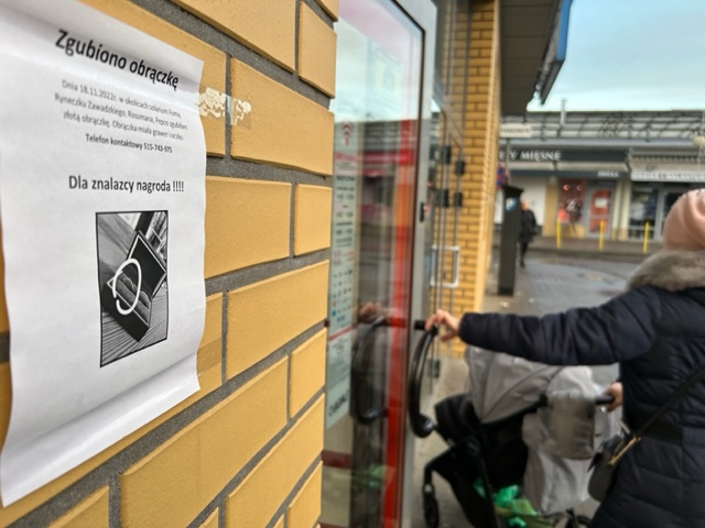 Na ścianie jednego ze sklepów przy ul. Zawadzkiego w Szczecinie wisi nietypowe ogłoszenie. Wynika z niego, że jakaś kobieta koło sklepu zgubiła ślubną obrączkę. Dla znalazcy oferuje nagrodę. Czy znajdzie się uczciwy znalazca, który zwróci właścicielce zgubę?