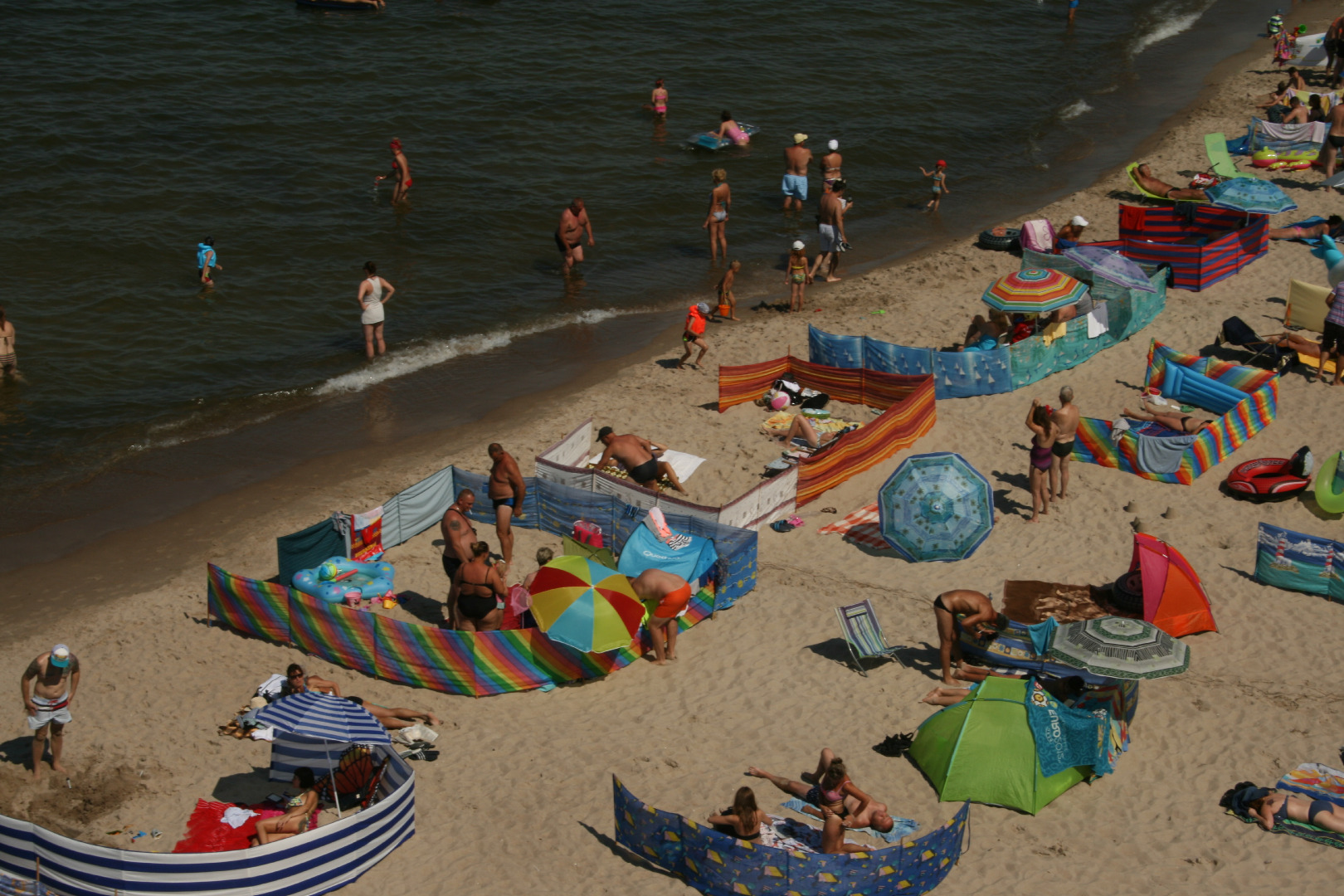 Pierwsi wczasowicze pojawiają się na plaży już po godz. 8 i ustawiają parawany przy samym brzegu morza. Parawan to wytyczenie miejsca dla „swoich”, dzięki czemu sąsiedzi nie będą biegali po „naszym” terytorium.