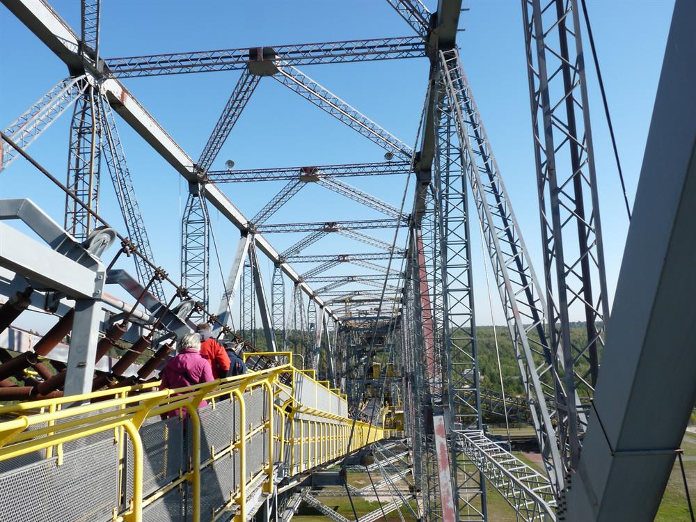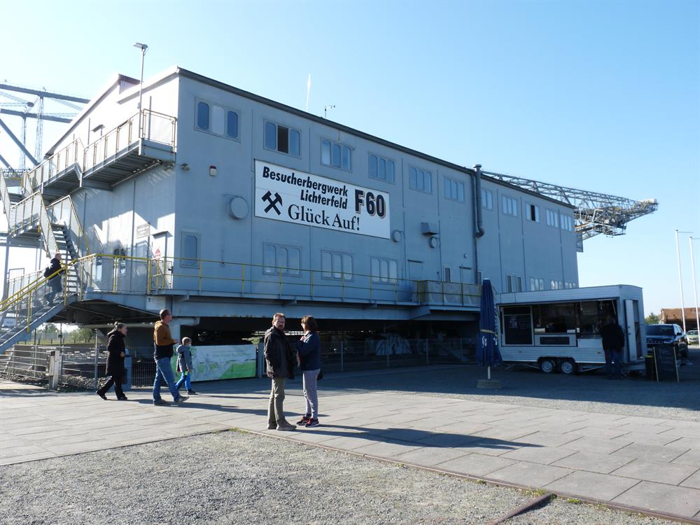 Ten jeden z pięciu zbudowanych w czasach NRD mostów przenośnikowych można obejrzeć w Muzeum Besucherbergwerk F60. Po górniczym pozdrowieniu „Szczęść Boże!” z przewodnikiem wyposażonym w audioguide (dostępne w języku polskim) rusza się - o ile się nie ma lęku wysokości! - na poznawanie stalowej konstrukcji. Najpierw trzeba wejść na wysokość 15 metrów, na której zaczyna się wędrówka wzdłuż pasa transmisyjnego. Można zajrzeć do górniczej dyspozytorki i wnętrza maszyny. Po spacerze, na szczęście tylko lekko pod górę, stalowym chodnikiem i schodkach dochodzi się na platformę widokową na wysokości 74 m, z której rozciąga się widok na sztuczne jezioro, farmę turbin wiatrowych, instalacje fotowoltaiczne, lasy. Chętni mogą z 60 metrów zjechać na linie (roping) albo zjeść kolację nad ziemią.