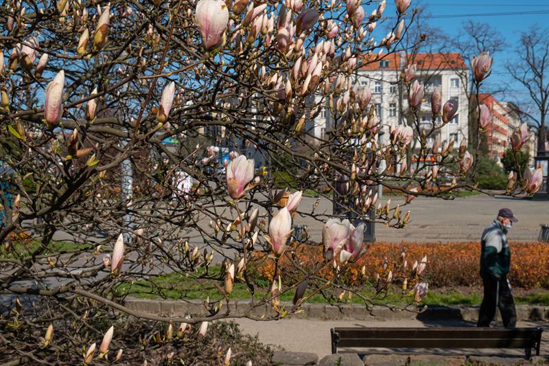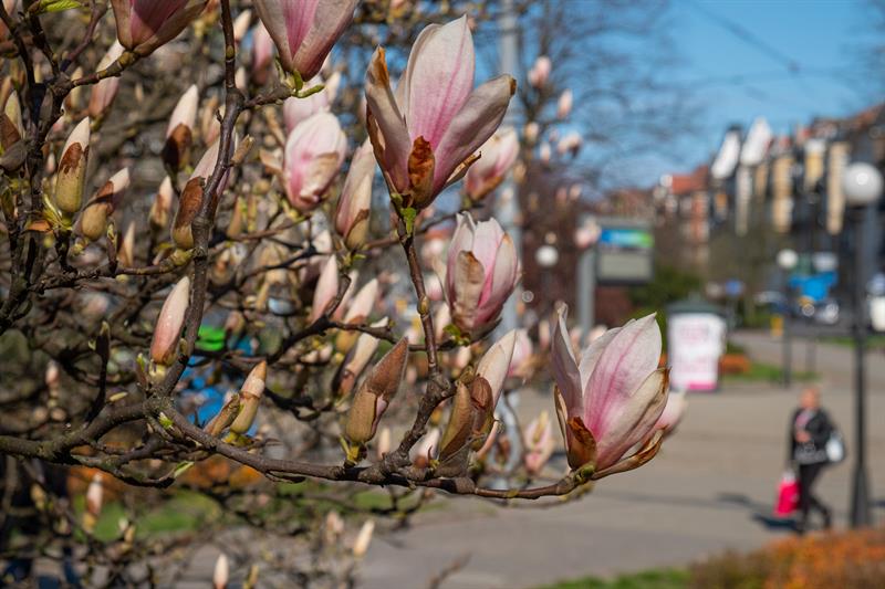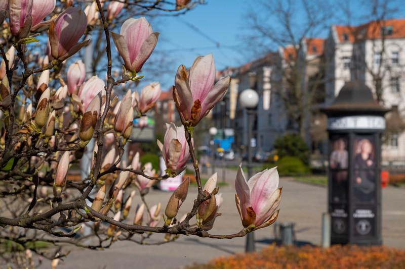 Po krokusach przyszedł czas na magnolie. Ciepła i słoneczna pogoda pobudziła kolejne zielone symbole Szczecina do kwitnięcia. Nasz fotoreporter uchwycił obsypane białymi i różowymi kwiatami drzewa przy ulicy Ogińskiego oraz na placu Grunwaldzkim. Magnolie w Szczecinie były sadzone już przed wojną. Podobno te przy al. Wojska Polskiego są najstarsze. Te piękne rośliny mogą osiągać blisko 100 lat.
