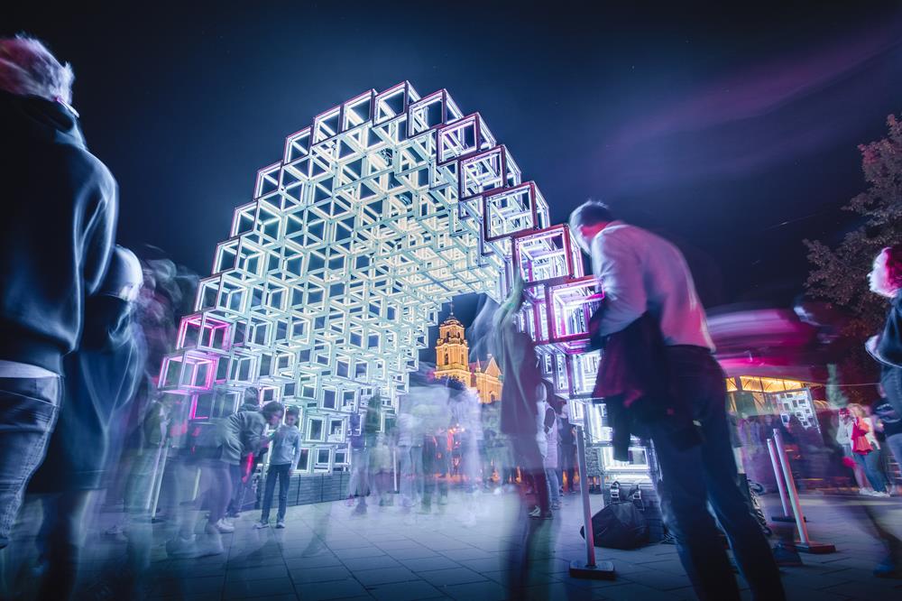 Świetlna sztuka przez trzy wieczory podkreślała uroki wileńskich placów, budynków z czerwonymi dachami oraz terenów zielonych. Artystyczne instalacje, łączące iluminacje z technologicznymi rozwiązaniami i elementami nauki, były nader efektowne. Wśród atrakcji były m.in. tańczące fontanny "Liquid Dance" (ang. Taniec Płynów) przy najnowszej dzielnicy stolicy - Paupys - oraz spektakl astronomiczny "Nova" twórców z Wielkiej Brytanii w parku Stawów. Swoją publiczność znalazła nawet ... mechanika kwantowa. Instalacja audiowizualna "Spin" (ang. Zakręcenie), inspirowana teoriami fizyki kwantowej XX wieku, oszałamiała tłum w niedawno zreformowanym czterystuletnim Ogrodzie Reformatów. Z kolei wspinający się po schodach Czesława Miłosza mogli się zachwycić panoramą Zarzecza, jednej z najstarszych dzielnic litewskiej stolicy, określanej często jako: alternatywna, komuna artystyczna, republika artystów. Festiwalowa trasa miała symboliczne zakończenie. Ostatni jej przystanek - na wzgórzu Tauras, z którego roztacza się widok zarówno na nowoczesne, jak i stare budynki Wilna - był oświetlony kompozycją "Hope" (ang. Nadzieja).