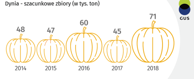 - Dobiega końca czas zbioru dyń! (...) Najcięższa dynia w Polsce w 2019 r. waży 870 kg! - napisał GUS na Twitterze.