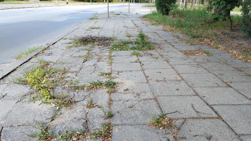 Chodnik wzdłuż ul. Piłsudskiego w Policach wymaga pilnego remontu. I odchwaszczenia. To drugie już trwa. Remont ma być przeprowadzony jeszcze w tym roku, ale tylko na jego niewielkim fragmencie.
