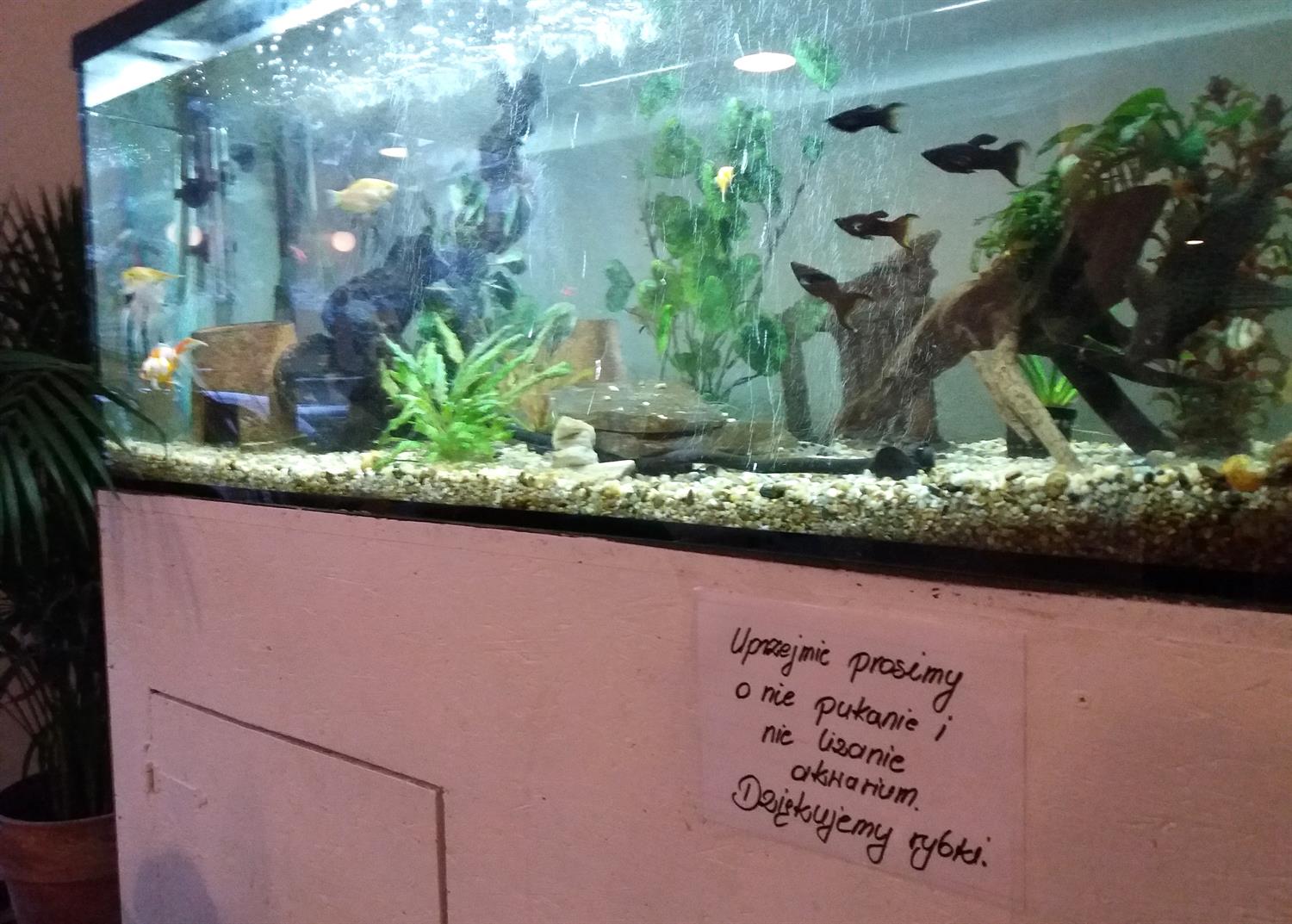 W jednej ze szczecińskich restauracji znajduje się akwarium, w którym… ryby mają głos, a głos ten jest wyrażany intrygującym komunikatem – widocznym na zdjęciu.
