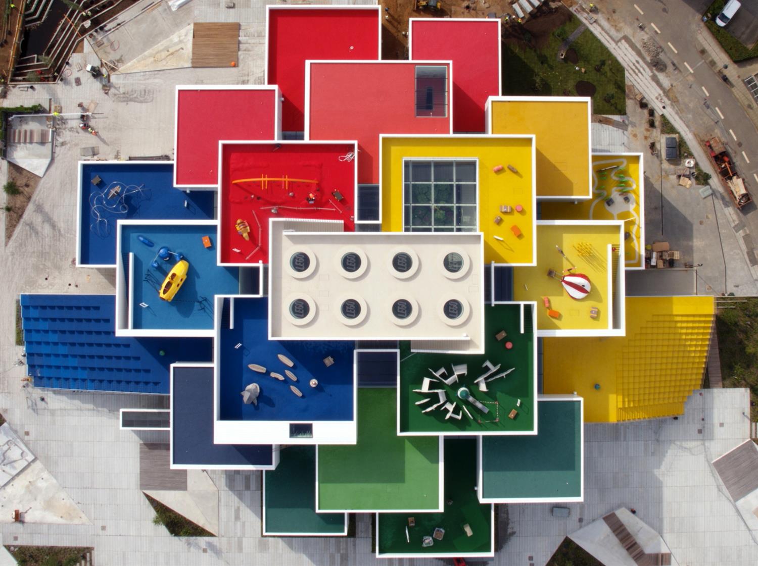 Oprócz stref doświadczalnych w budynku są przestrzenie publiczne oraz wiele połączonych tarasów i placów zabaw na świeżym powietrzu dostępnych dla zwiedzających za darmo. Na jego szczycie znajduje się zaś gigantyczny klocek z ośmioma charakterystycznymi dla klocka Lego 2 x 4 wypustkami, a w rzeczywistości świetlikami.