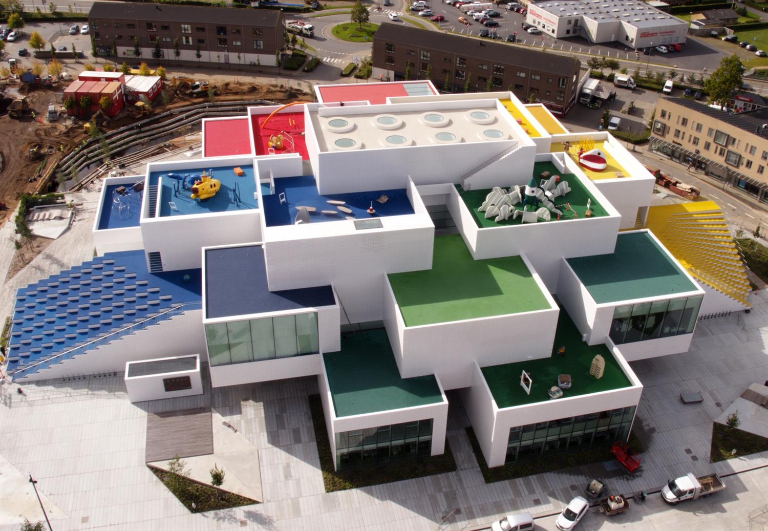 Pomysł stworzenia nowej siedziby dla istniejącej od 1932 r. rodzinnej firmy zrodził się siedem lat temu, a jej budowa trwała cztery. Lego House został zaprojektowany przez pracownię architektoniczną BIG (Bjarke Ingels Group) i składa się z 21 białych bloków ułożonych jeden na drugim. Fasadę pokrywają płytki, stwarzające iluzję, że całą budowlę o powierzchni 12 tys. mkw. wykonano z klocków Lego.