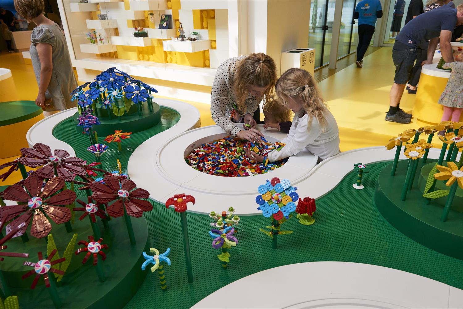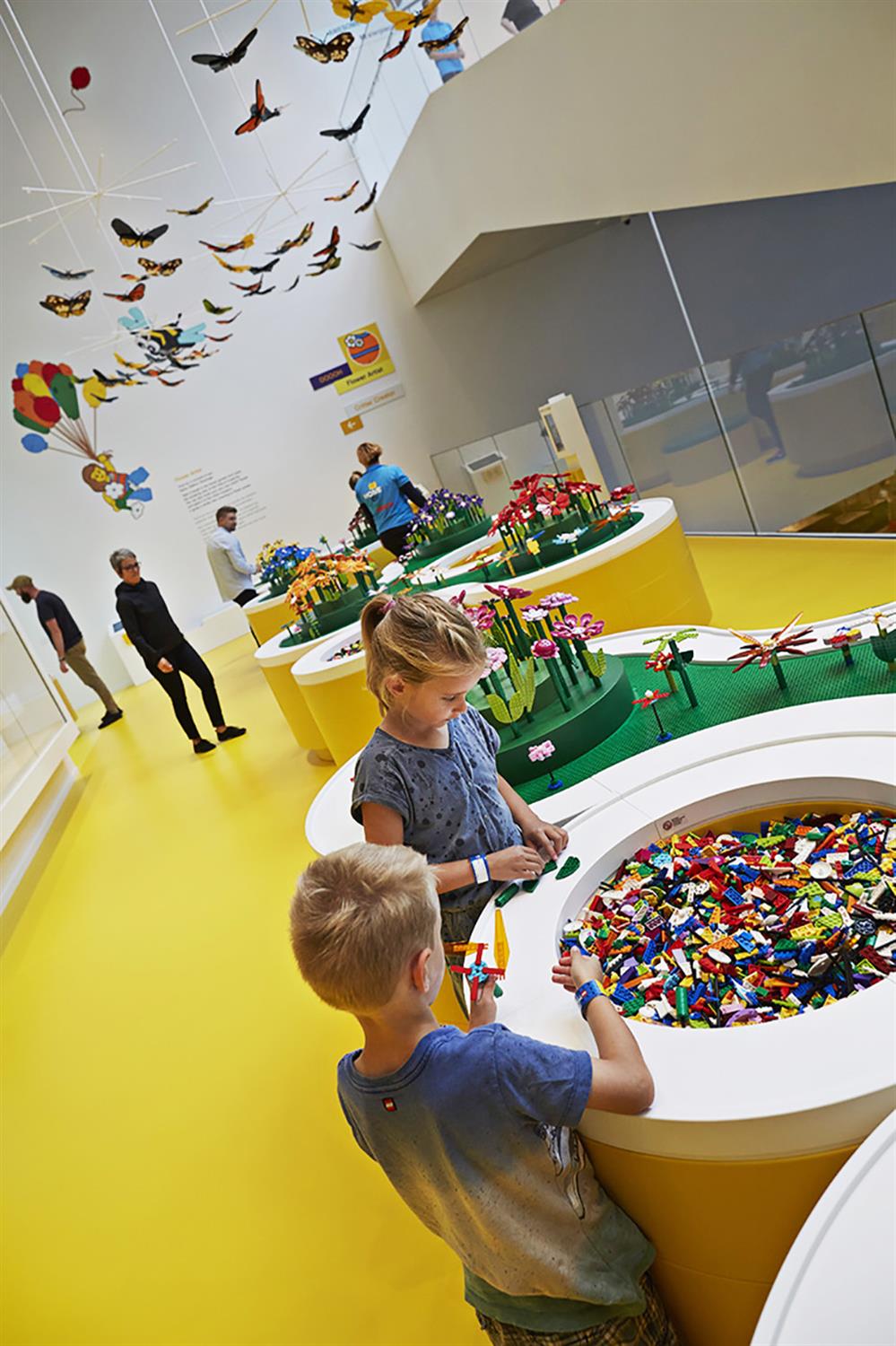 Na parterze budynku są trzy restauracje – w jednej gości obsługują roboty, sklep firmowy - Lego Store, sala konferencyjna oraz Lego Square – plac o powierzchni 2 tys. m kw. Strefy doświadczalne obejmują cztery kolorowe obszary zabaw, galerię budowli Lego stworzonych przez fanów oraz dużą wystawę poświęconą historii marki, prezentującą m.in. 200 najbardziej kultowych zestawów klocków Lego. Bazują one na czterech różnych kolorach, z których każdy reprezentuje specyficzny aspekt zabawy i nauki. Czerwona poświęcona jest umiejętnościom twórczym, Niebieska poznawczym, Zielona społecznym, zaś Żółta emocjonalnym. Każda ze stref oferuje wiele aktywności zachęcających zwiedzających do zabawy. Wstęp tani jednak nie jest – bilet kosztuje 199 duńskich koron, czyli 115 zł.