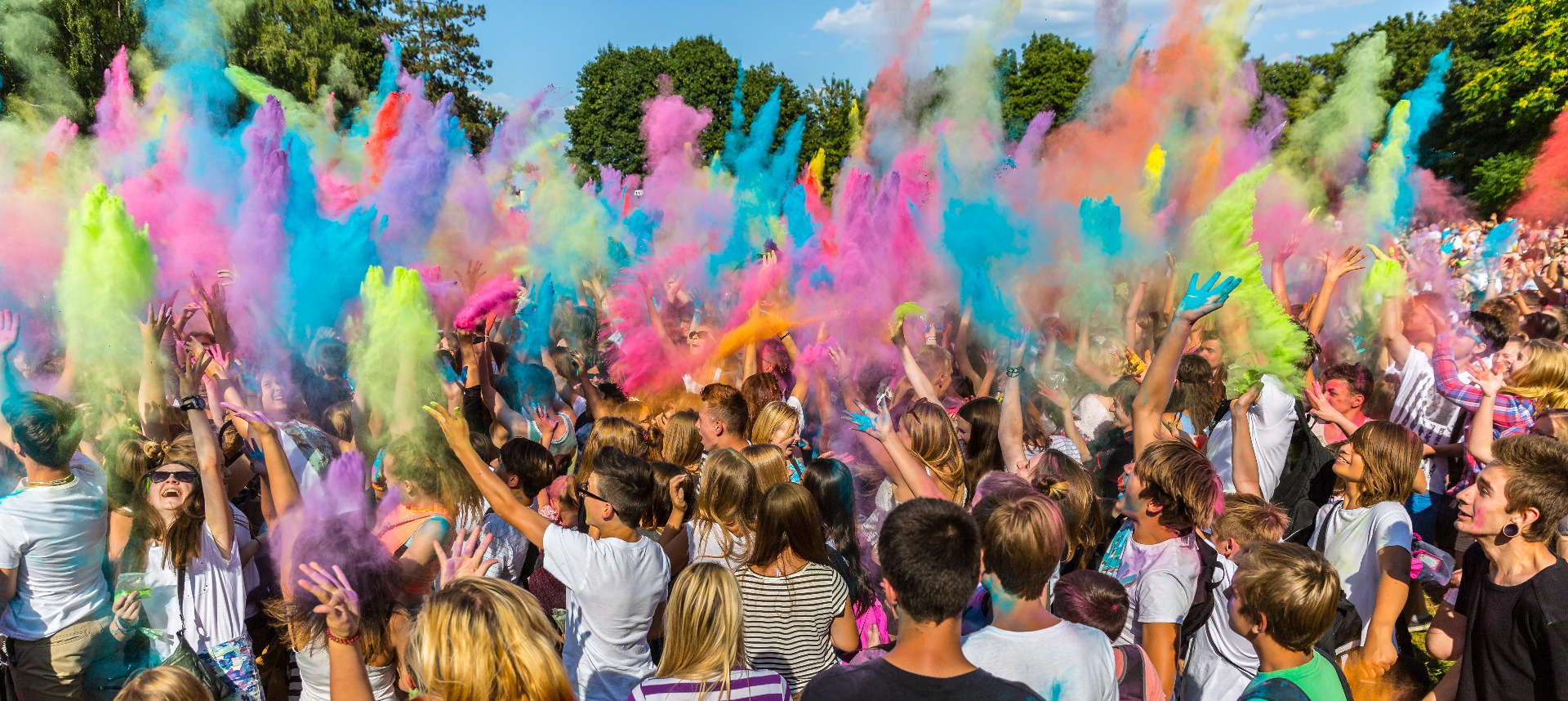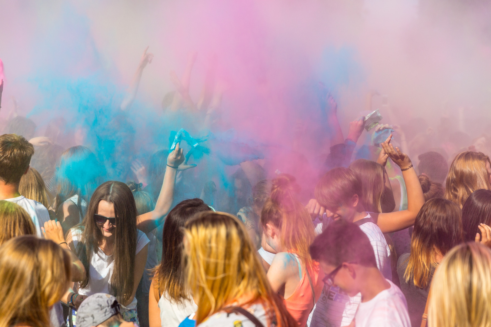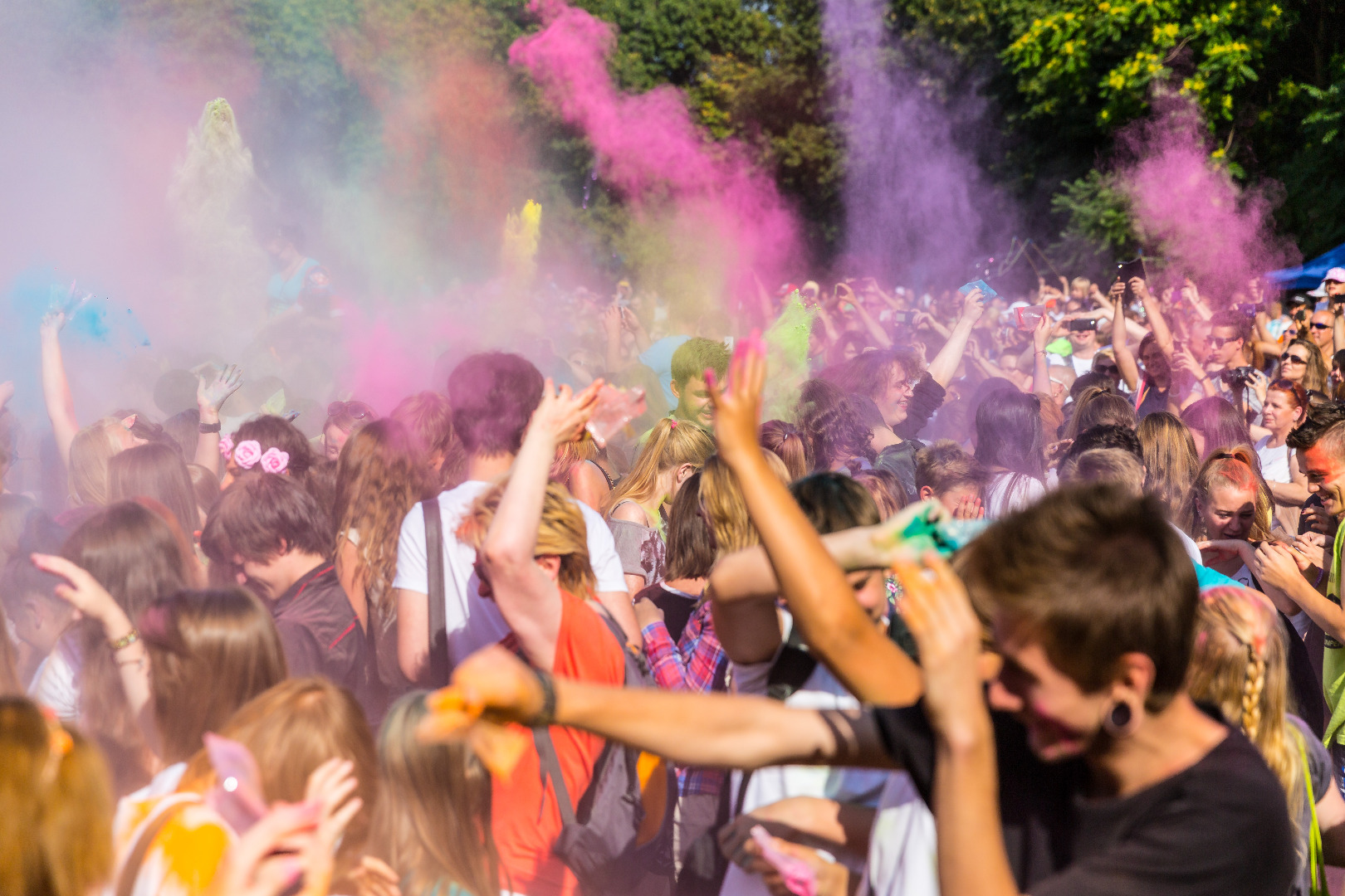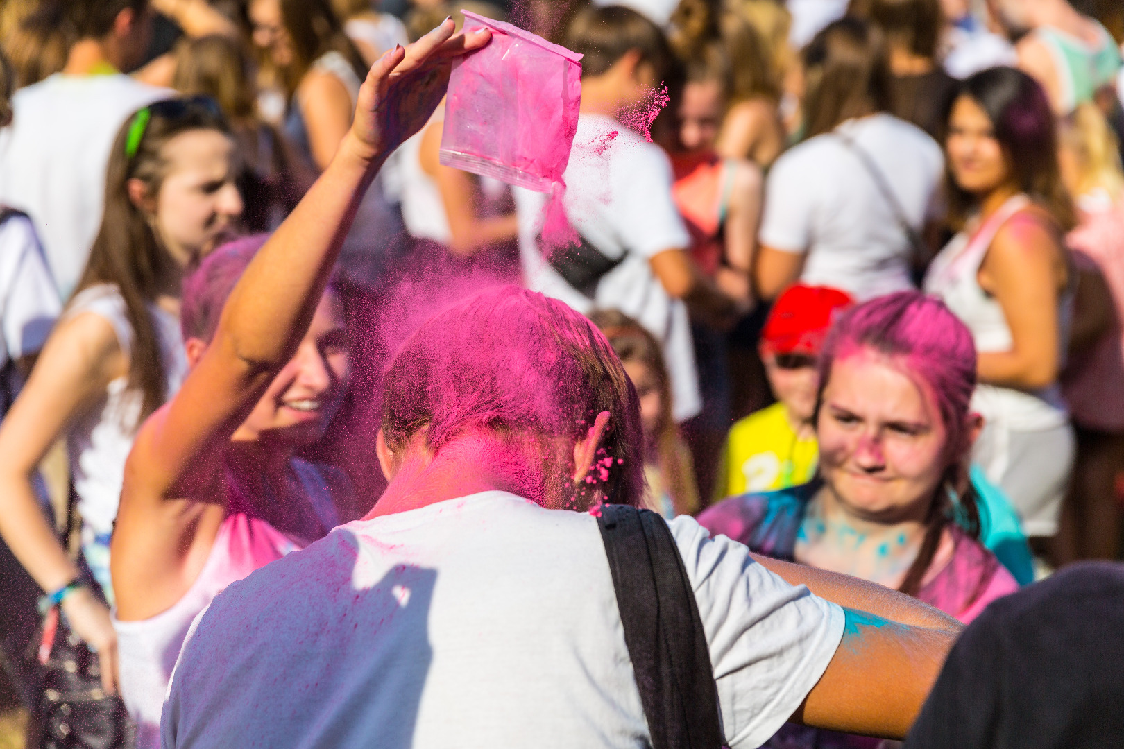 Obok Festiwalu Baniek Mydlanych na Psiej Polanie w Szczecinie miało miejsce inne szaleństwo na zakończenie wakacji. To Kolor Fest czyli obsypywanie się kolorowym proszkiem, nawiązujące do hinduskiego święta Holi, które upamiętnia zwycięstwo dobra nad złem.