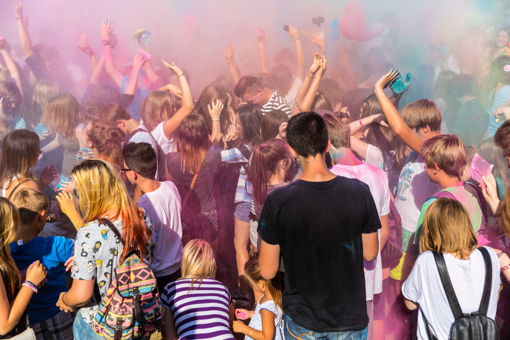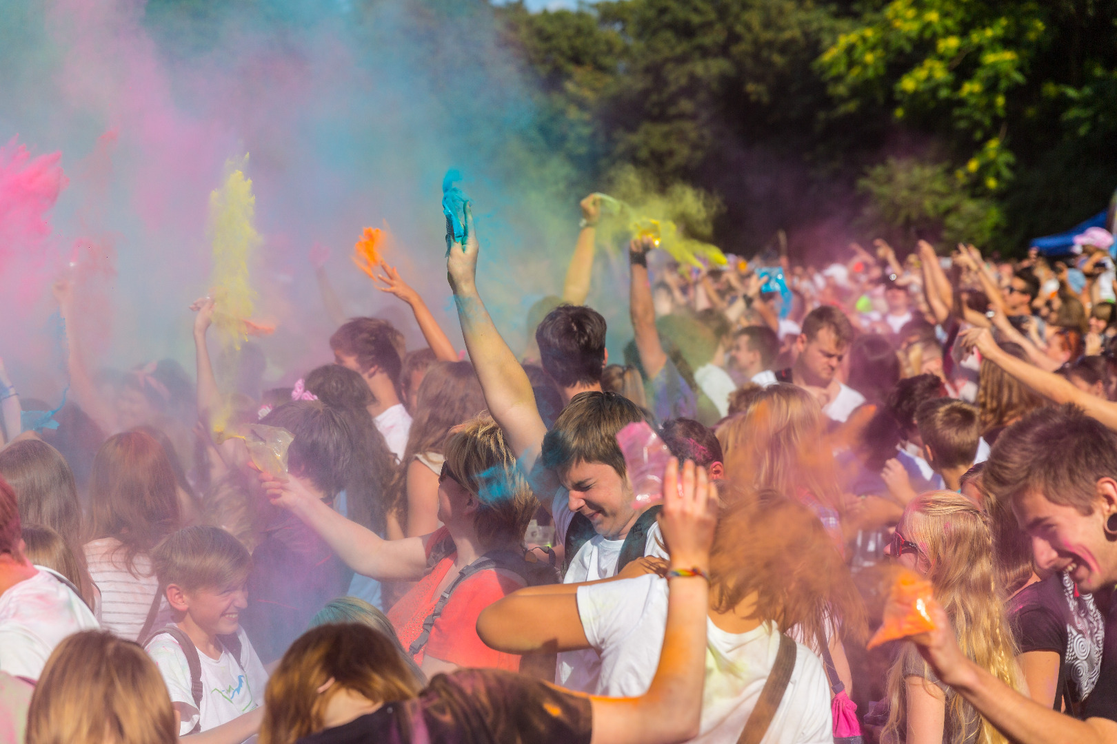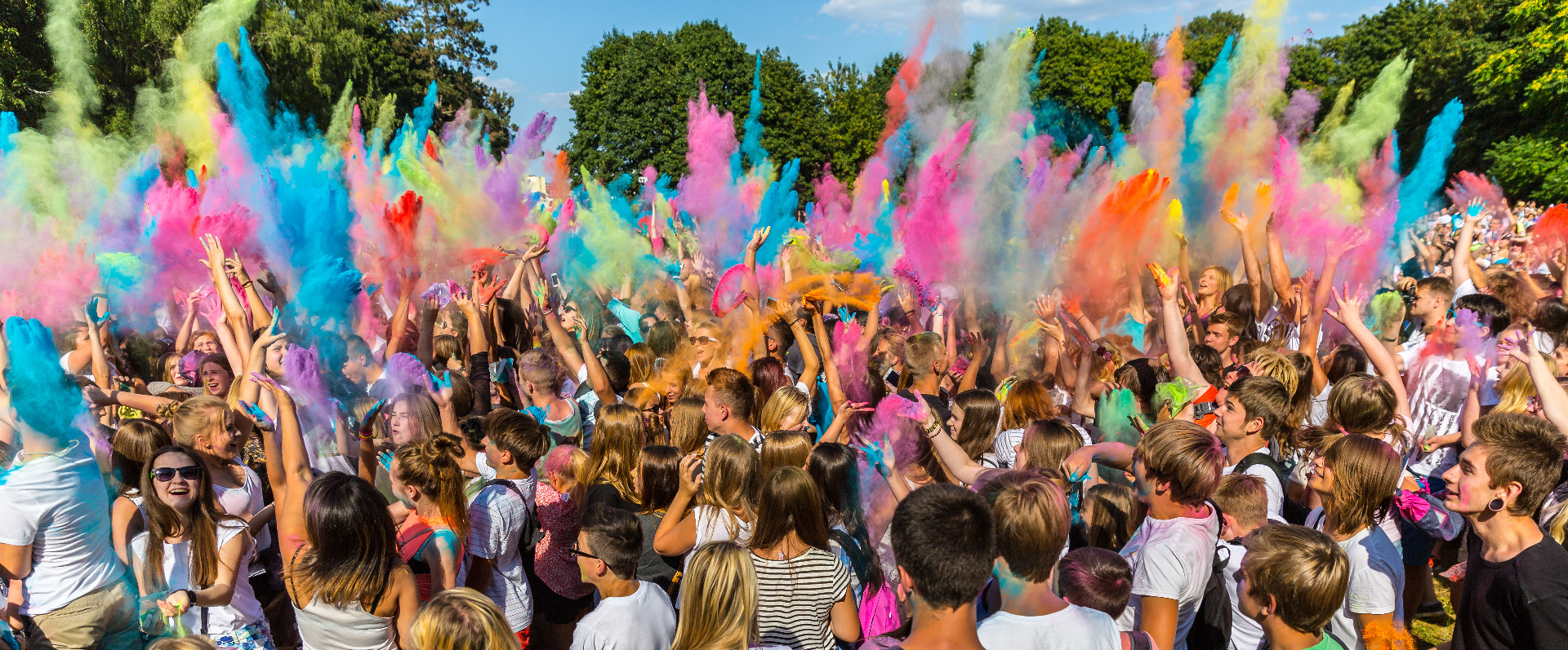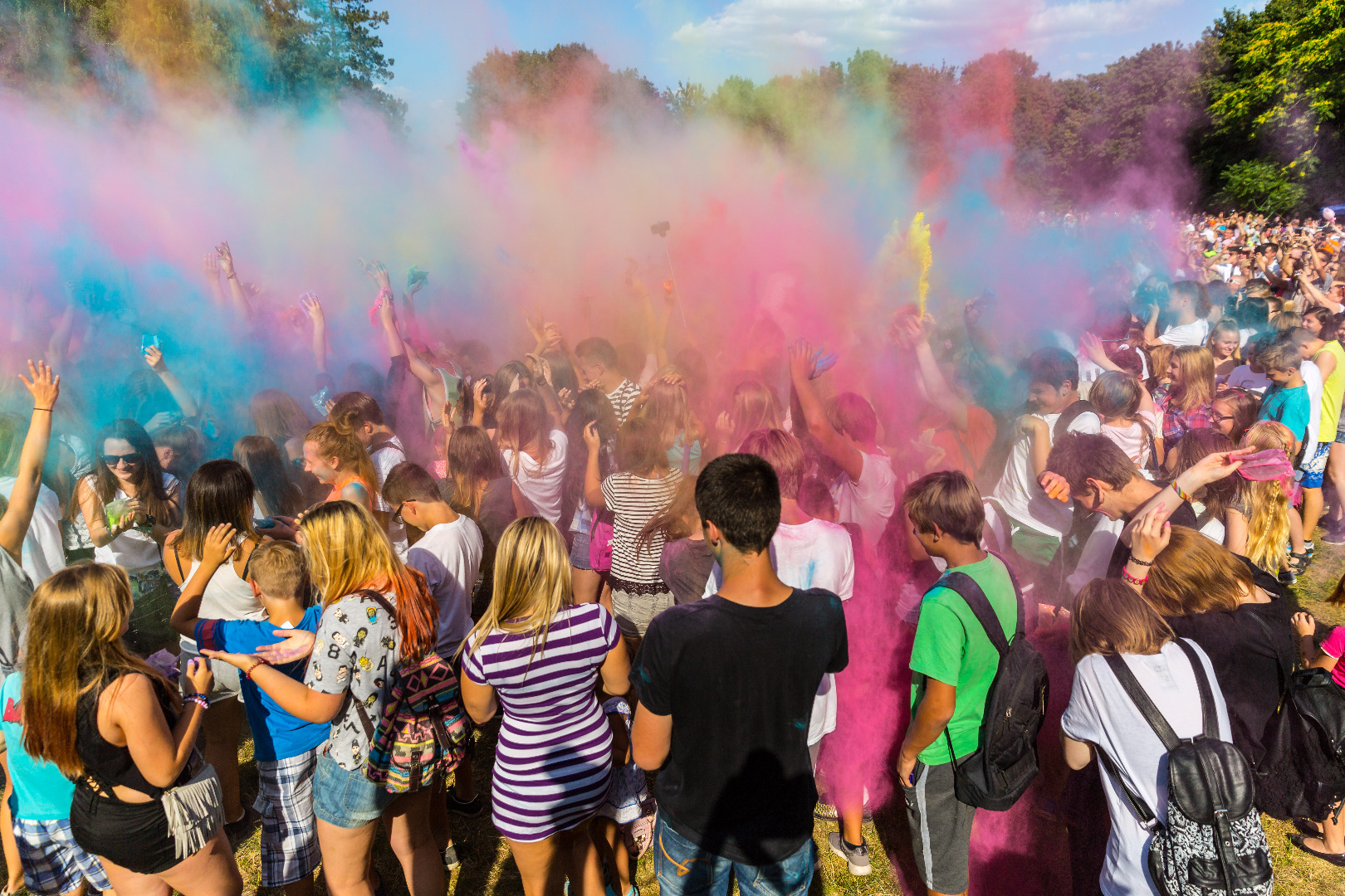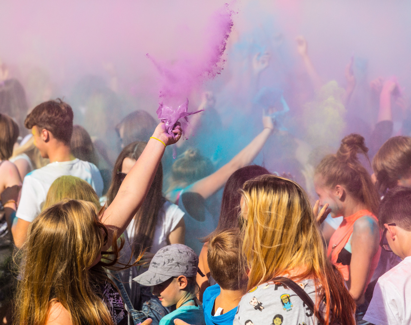 Obok Festiwalu Baniek Mydlanych na Psiej Polanie w Szczecinie miało miejsce inne szaleństwo na zakończenie wakacji. To Kolor Fest czyli obsypywanie się kolorowym proszkiem, nawiązujące do hinduskiego święta Holi, które upamiętnia zwycięstwo dobra nad złem.