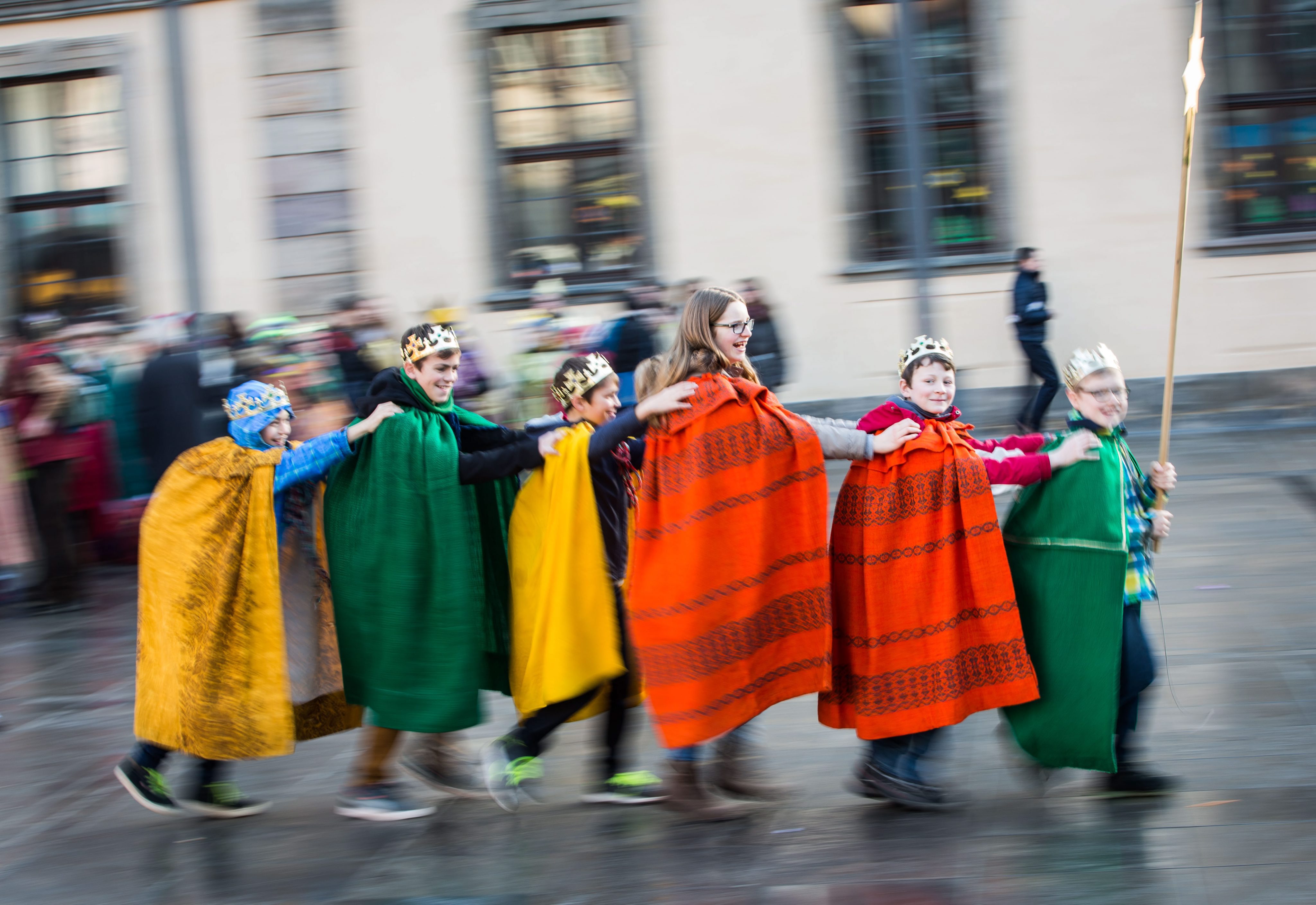 Młodzież przebrana za trzech króli w tradycyjnym barwnym korowodzie maszeruje ulicami niemieckiego miasteczka Poppenhausen. Idąc tak od drzwi do drzwi zbierają pieniądze, które zamierzają następnie przekazać na szczytny cel. Fot. EPA/FRANK RUMPENHORST Dostawca: PAP/EPA.